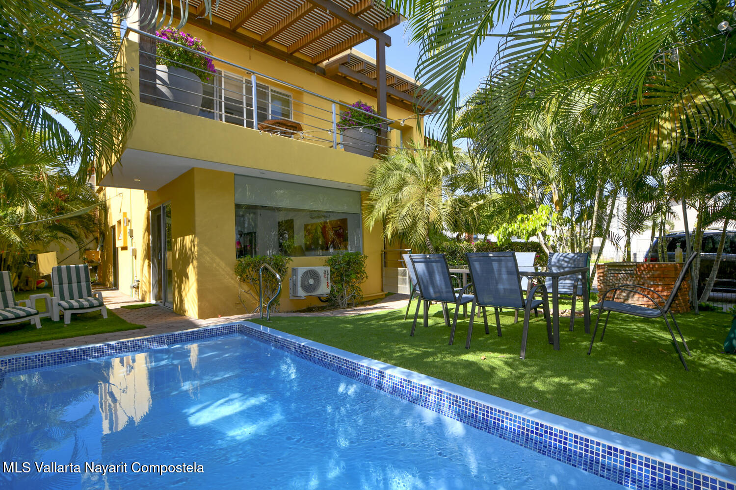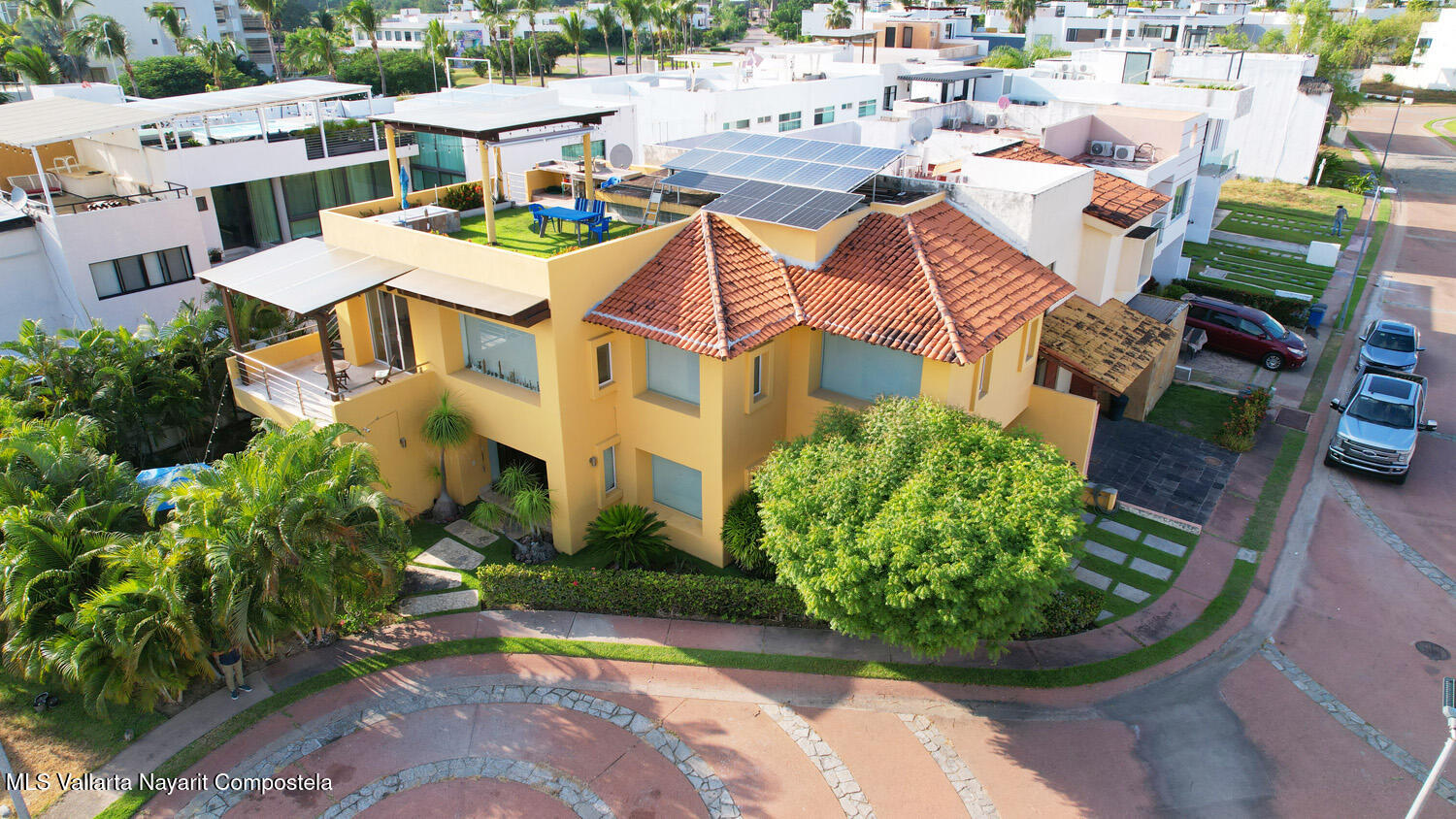 Descubra la casa de sus suenos dentro de la comunidad privada frente al mar de Tamaran en La Cruz de Huanacaxtle. Membresias club de playa disponibles tambien. Esta residencia con 3,885.77 pies cuadrados, consta de 2 pisos mas terraza en la azotea con jacuzzi y barbacoa. El nivel superior tiene una amplia sala de estar / comedor con una gran cocina de concepto abierto, dormitorio principal en suite con oficina, 1/2 bano y amplia terraza cubierta mas area de lavado. El piso inferior consta de una gran entrada con fuentes y muro lloron, 2 departamentos ideales para invitados o generar ingresos por alquiler: uno grande de 1 dormitorio con bano y cocina y un estudio con cocina y bano. Area de lavado para el piso inferior tambien. 7 mini split A / C; paneles sokares; aljibe; hermoso jardin tro