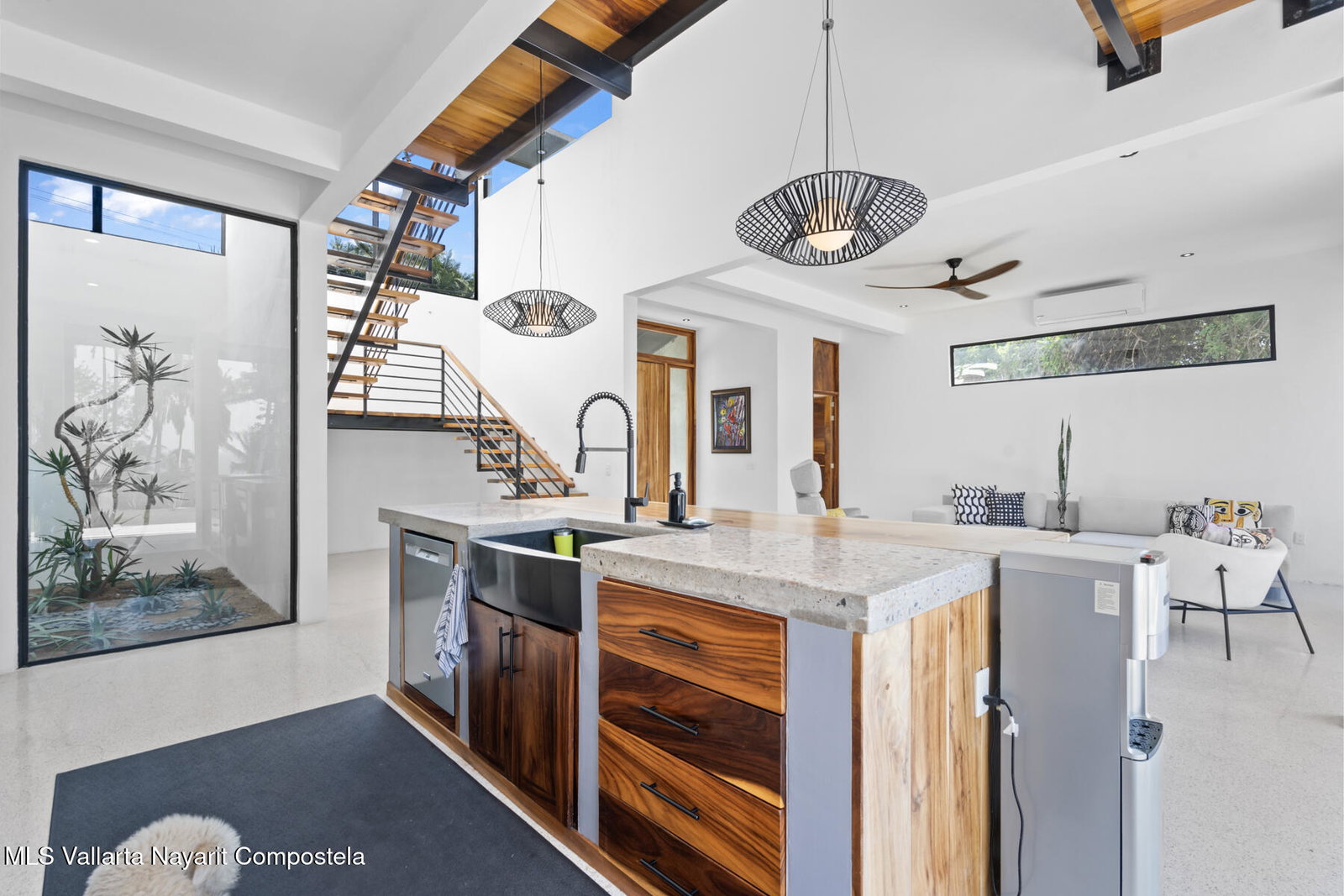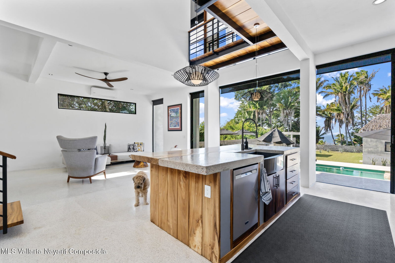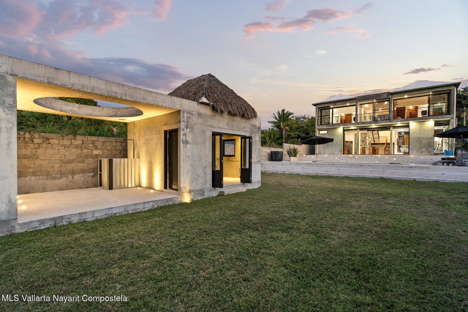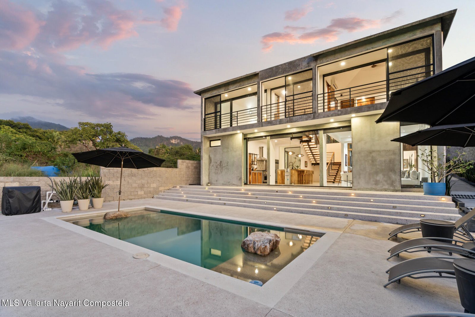 (English below) Hermosa villa con arquitectura contemporanea en la zona de Litibu, Higuera Blanca. Esta maravillosa propiedad, construida sobre un terreno de 1,027.57 m, esta cercada por un porton electrico. Cuenta con una espectacular arquitectura contemporanea en concreto aparente con acabados en estuco, pisos de cemento pulido, techos altos de mas de 3 metros que aportan frescura al espacio, y ventanas anti-huracan con vistas al jardin y la zona de la piscina. Las ventanas del segundo piso ofrecen vistas al mar y la selva, permitiendo contemplar la puesta de sol sobre la maravillosa Bahia de Litibu.Villa Loma Litibu tiene 348.57 m construidos. La casa principal, en la planta baja, cuenta con una hermosa cocina abierta con vista al jardin y la