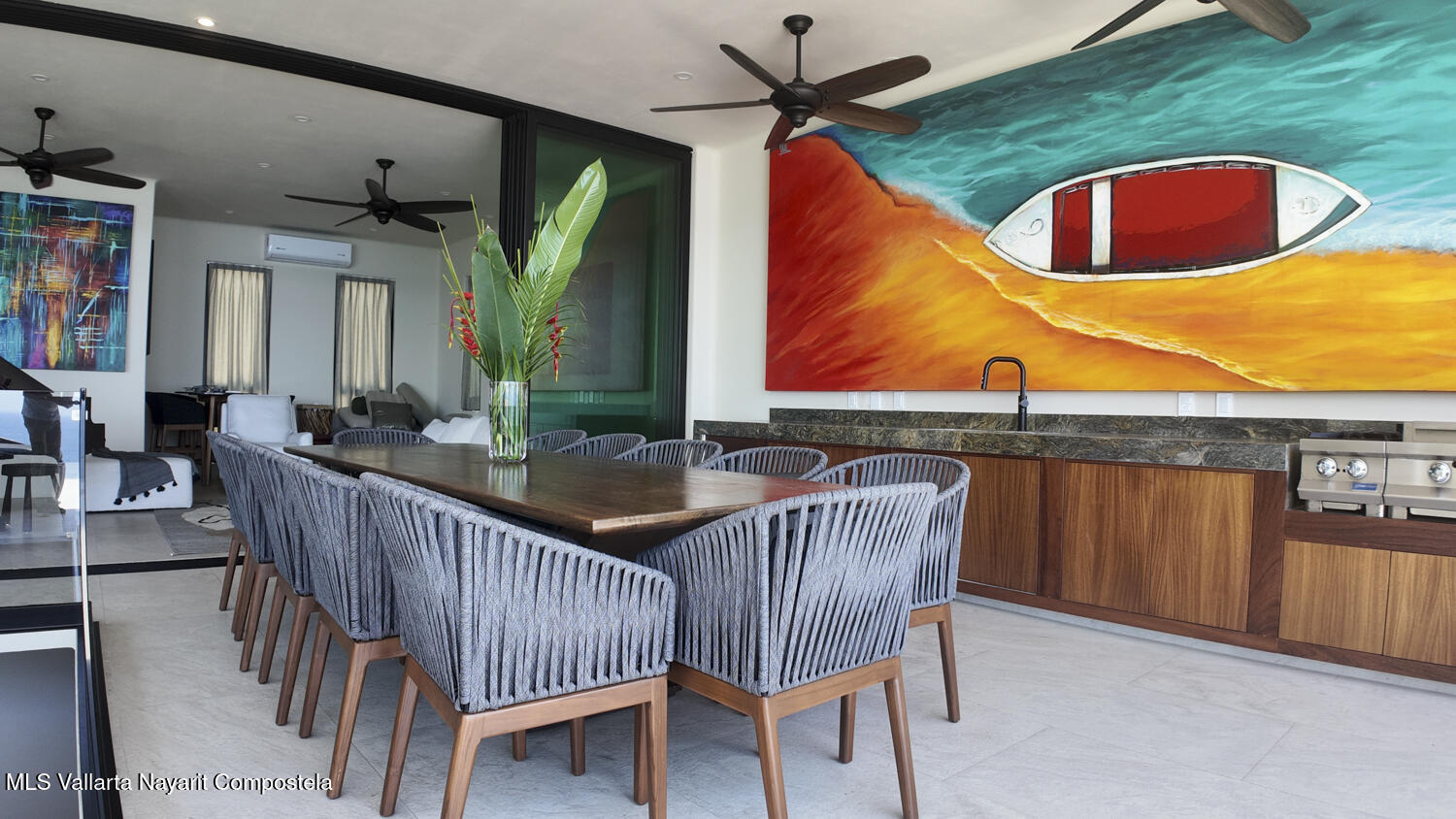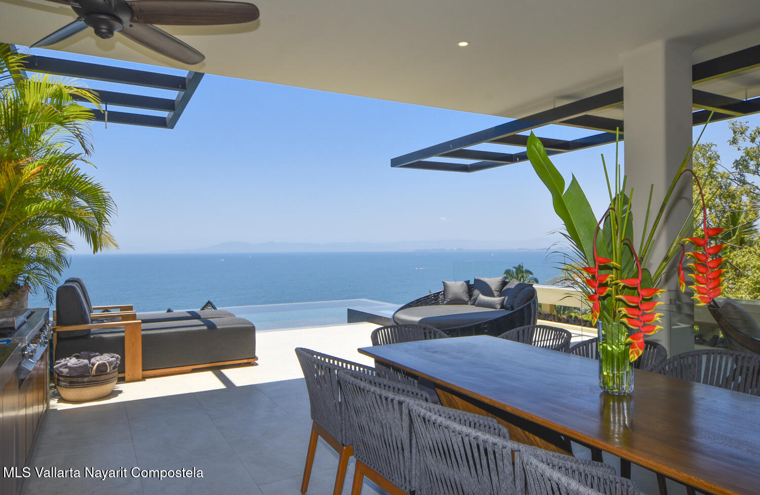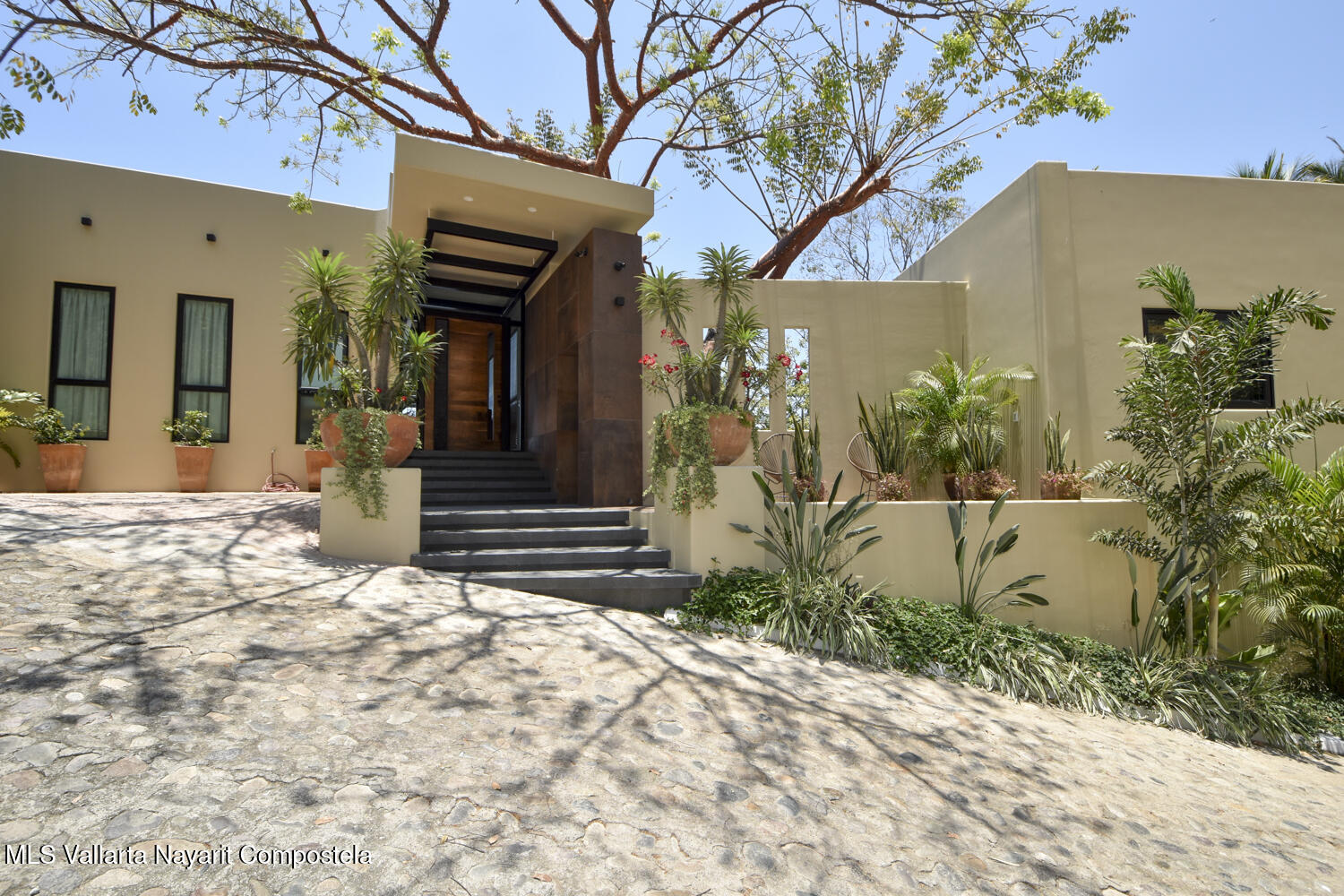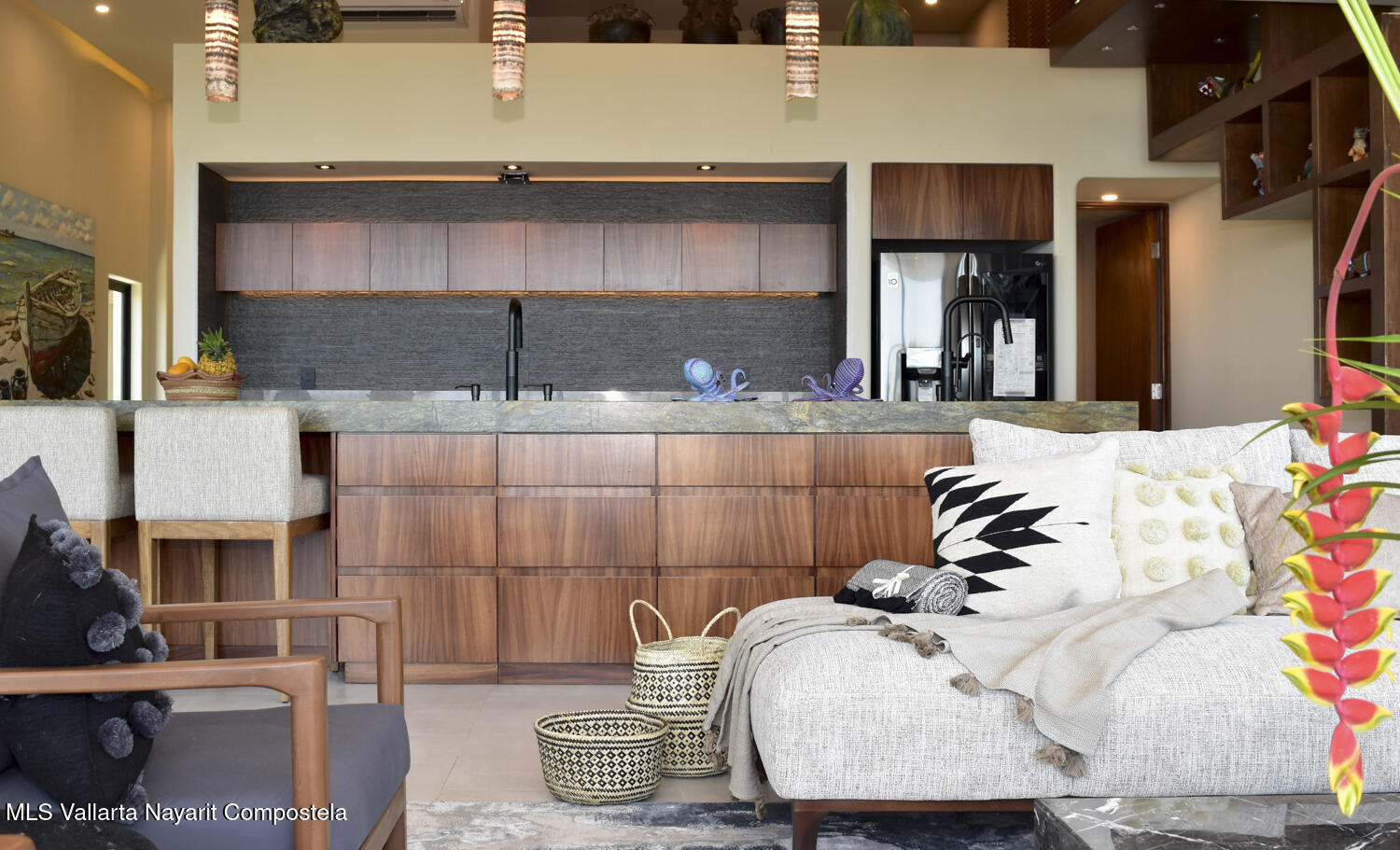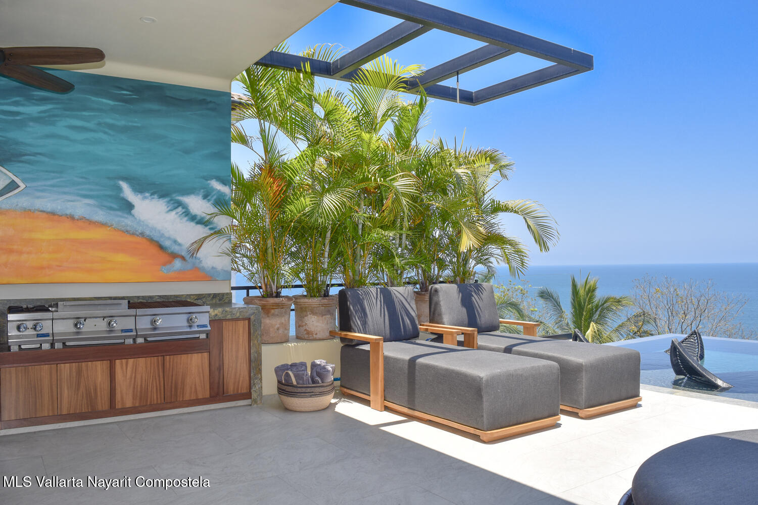 Descansando majestuosamente sobre la bahia, esta recien construida Villa de 4 recamaras y 6 banos, cuenta con sala de medios/teatro, bodega de vinos empedrada, estudio de artista, alberca y cochera para dos carros. Resting majestically above the bay, this recently constructed 4 bedroom 6 bath villa, complete with media / theater room, stone wine seller, artists studio, swimming pool, and 2 car garage.