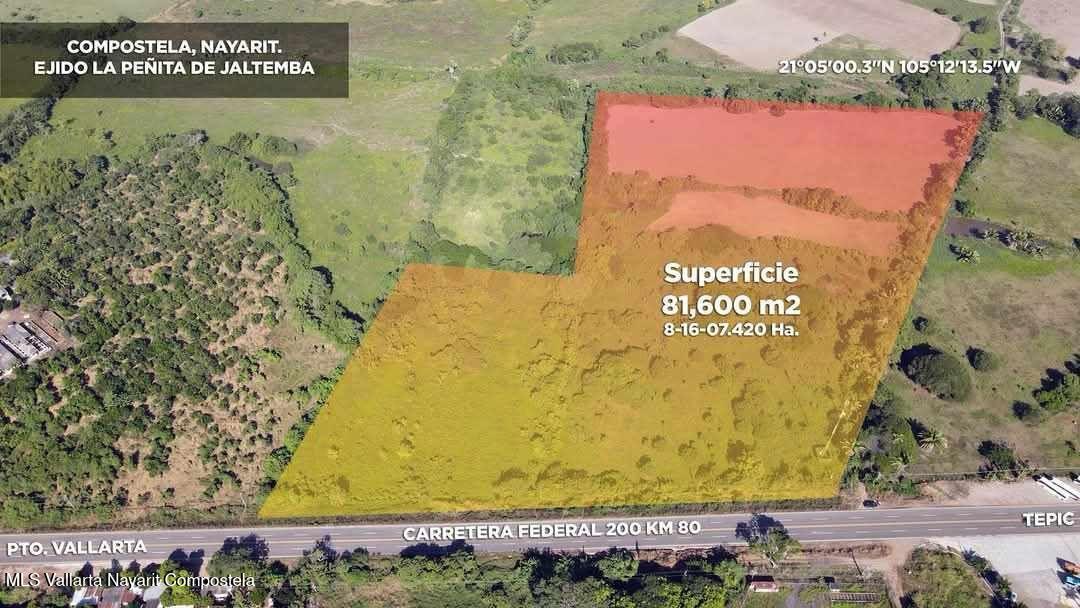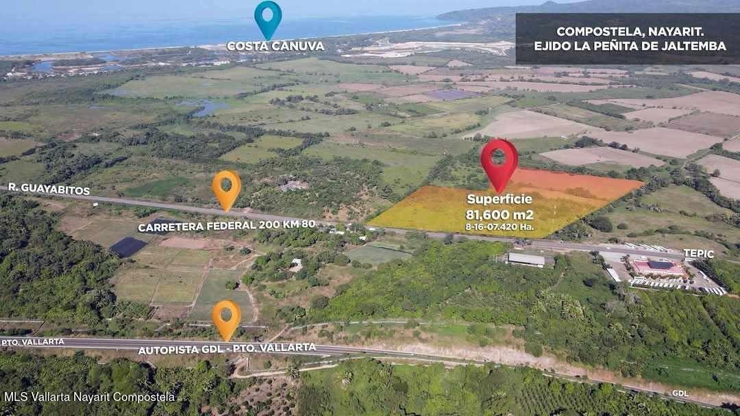 ENGLISH BELOWMagnifico lote de poco mas de 8 hectareas con mas usos de suelo mixto perfecto para desarrollos inmobiliarios de vivienda, comercial o industria, ubicado en una zona de crecimiento tanto turistico como de logistica comercial, a pocos metros del acceso a la autopista JALA-PUERTO VALLARTA.Magnificent lot of just over 8 hectares with more mixed land uses, perfect for residential, commercial, or industrial real estate developments. Located in an area of growing tourism and commercial logistics, just a few meters from the access to the JALA-PUERTO VALLARTA highway.