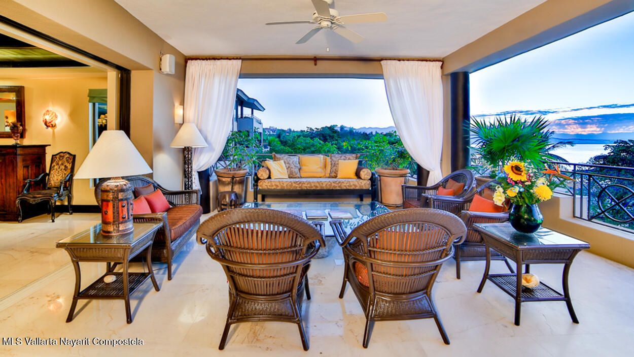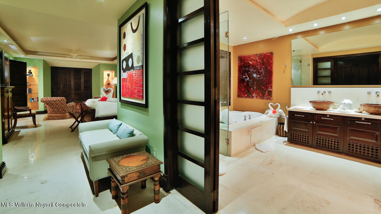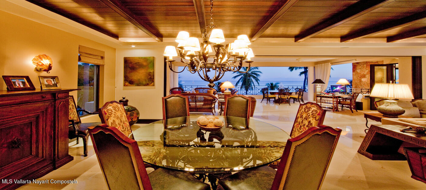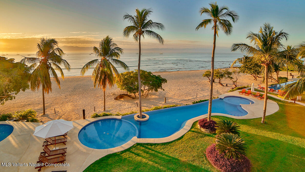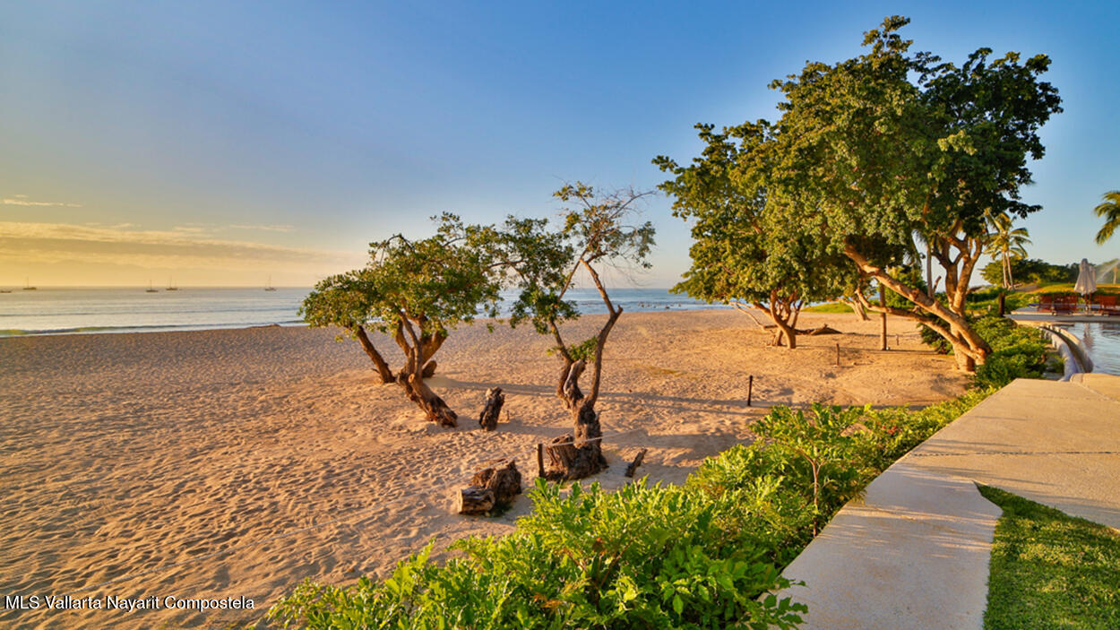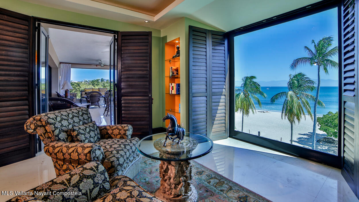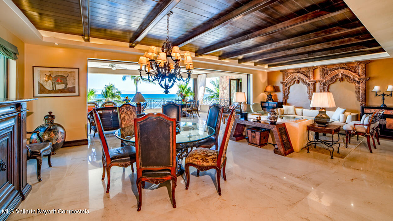 Hacienda de Mita blends modern design with traditional Mexican style. This beautifully designed, single-story condominium features exquisite decor and approximately 3,500 square feet of indoor and outdoor space. It features a spacious master suite with a Jacuzzi, two additional spacious bedrooms, all with en-suite bathrooms, for a total of four and a half bathrooms, and a large kitchen-dining-living room that extends from the living room to the terrace. The beachfront location offers stunning views of the Pacific Ocean and the beach. The fully equipped kitchen features luxury finishes and marble floors. An additional flex space with a bathroom and laundry area can be used as a maid's quarters, an additional bedroom, or a studio. Additionally, this unit has a Premier Membership.