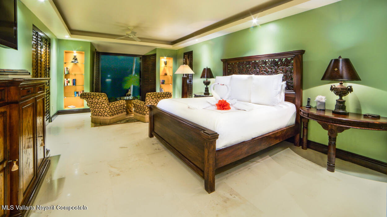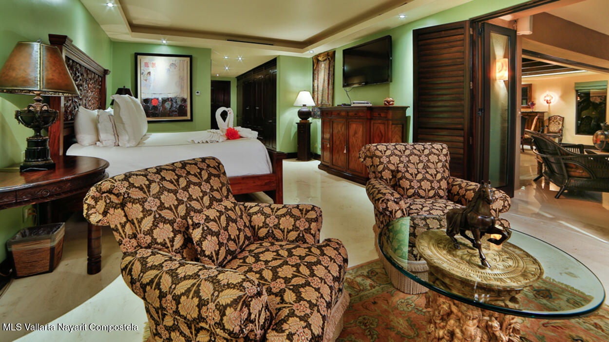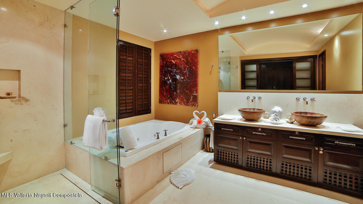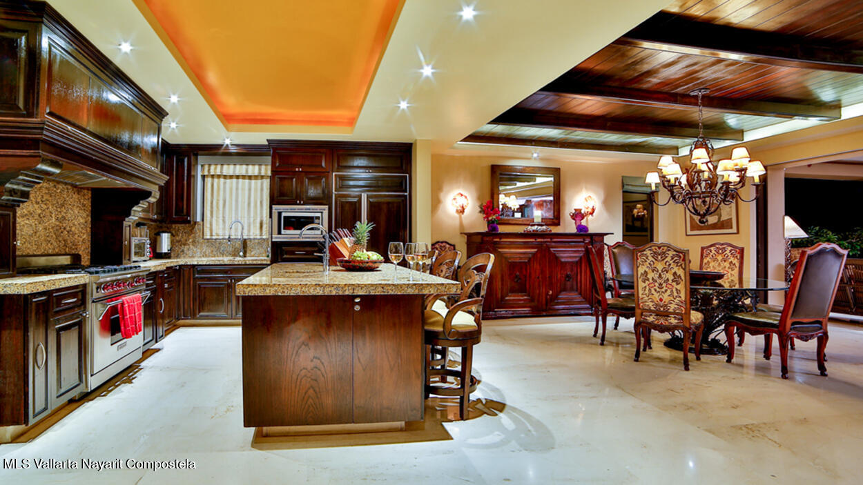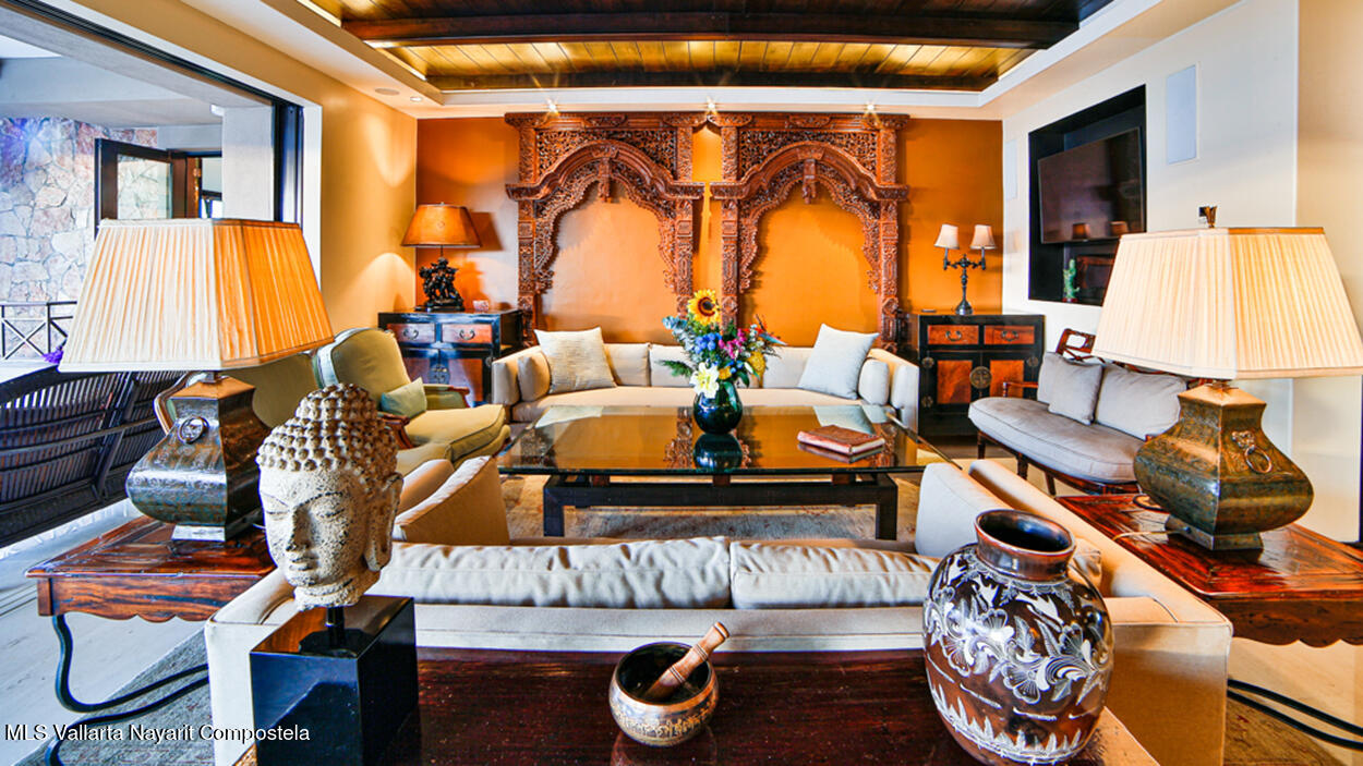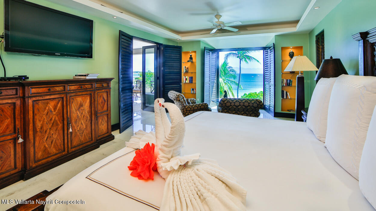 Hacienda de Mita blends modern design with traditional Mexican style. This beautifully designed, single-story condominium features exquisite decor and approximately 3,500 square feet of indoor and outdoor space. It features a spacious master suite with a Jacuzzi, two additional spacious bedrooms, all with en-suite bathrooms, for a total of four and a half bathrooms, and a large kitchen-dining-living room that extends from the living room to the terrace. The beachfront location offers stunning views of the Pacific Ocean and the beach. The fully equipped kitchen features luxury finishes and marble floors. An additional flex space with a bathroom and laundry area can be used as a maid's quarters, an additional bedroom, or a studio. Additionally, this unit has a Premier Membership.
