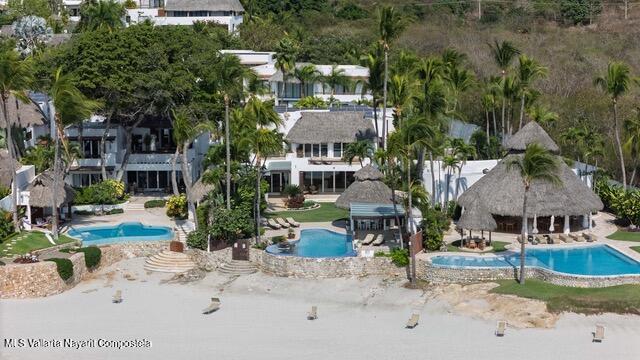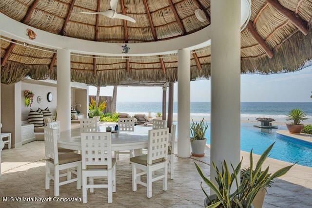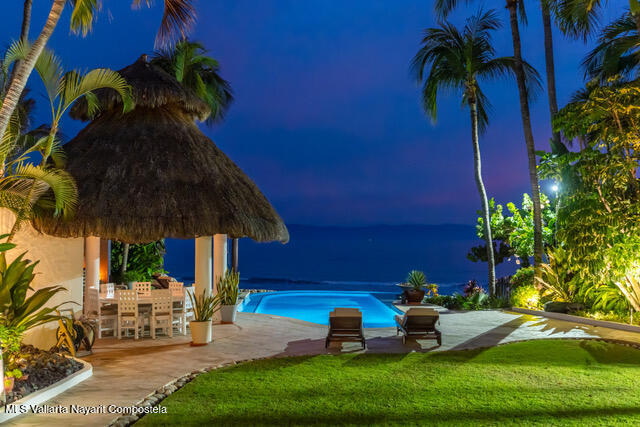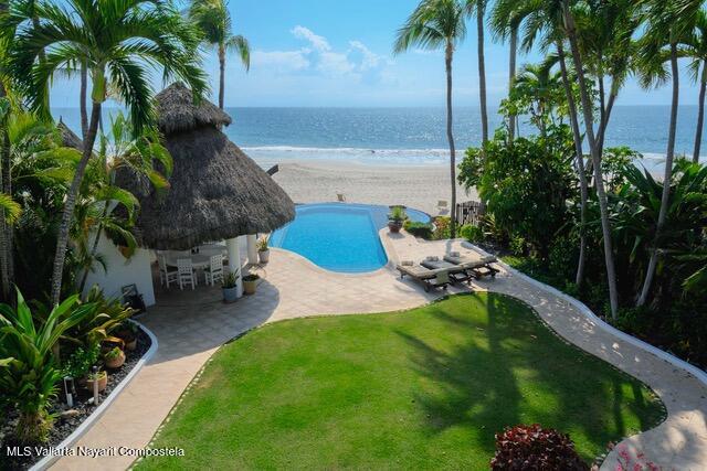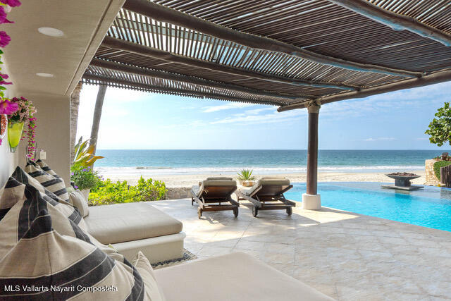 OCEANFRONT ESTATE on DESTILADERAS BEACH60 Linear Feet of Beachfront - 9,800 square feet of total construction.6 bedrooms with 8 custom designed bathroomsIt is extremely rare to find such a spacious & private home located on a premier beach in La Playa Destiladeras. This one-of-a-kind solid construction oceanfront home sits overlooking the entire Bahia de Banderas and has been meticulously cared for to the finest detail. 24-hour security, public areas that include tennis & pickleball courts, fitness center, & private Casa Club. Designed as the model home by one of Mexico's most famous architect, Jaime Barba & Gerardo Ramirez. It is the prime lot, literally lot #1 of only 7 beachfront homes in the community and situated on a rare level plane with the beachfront.