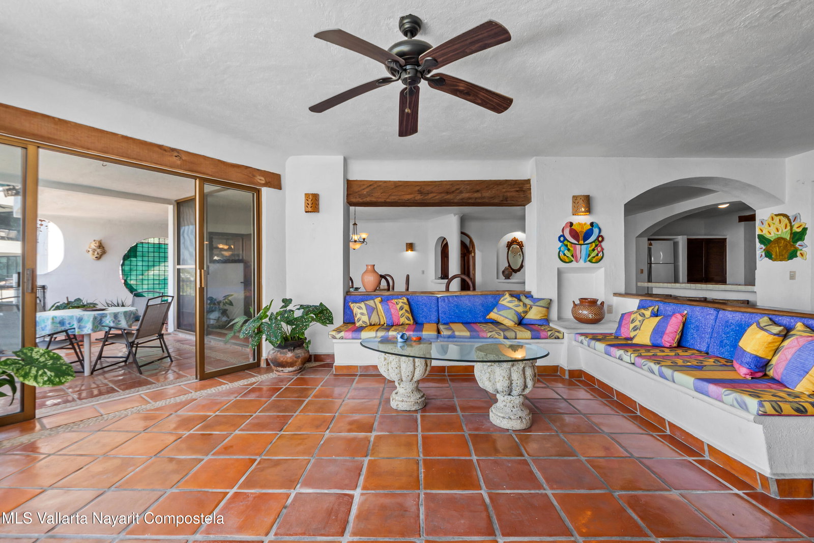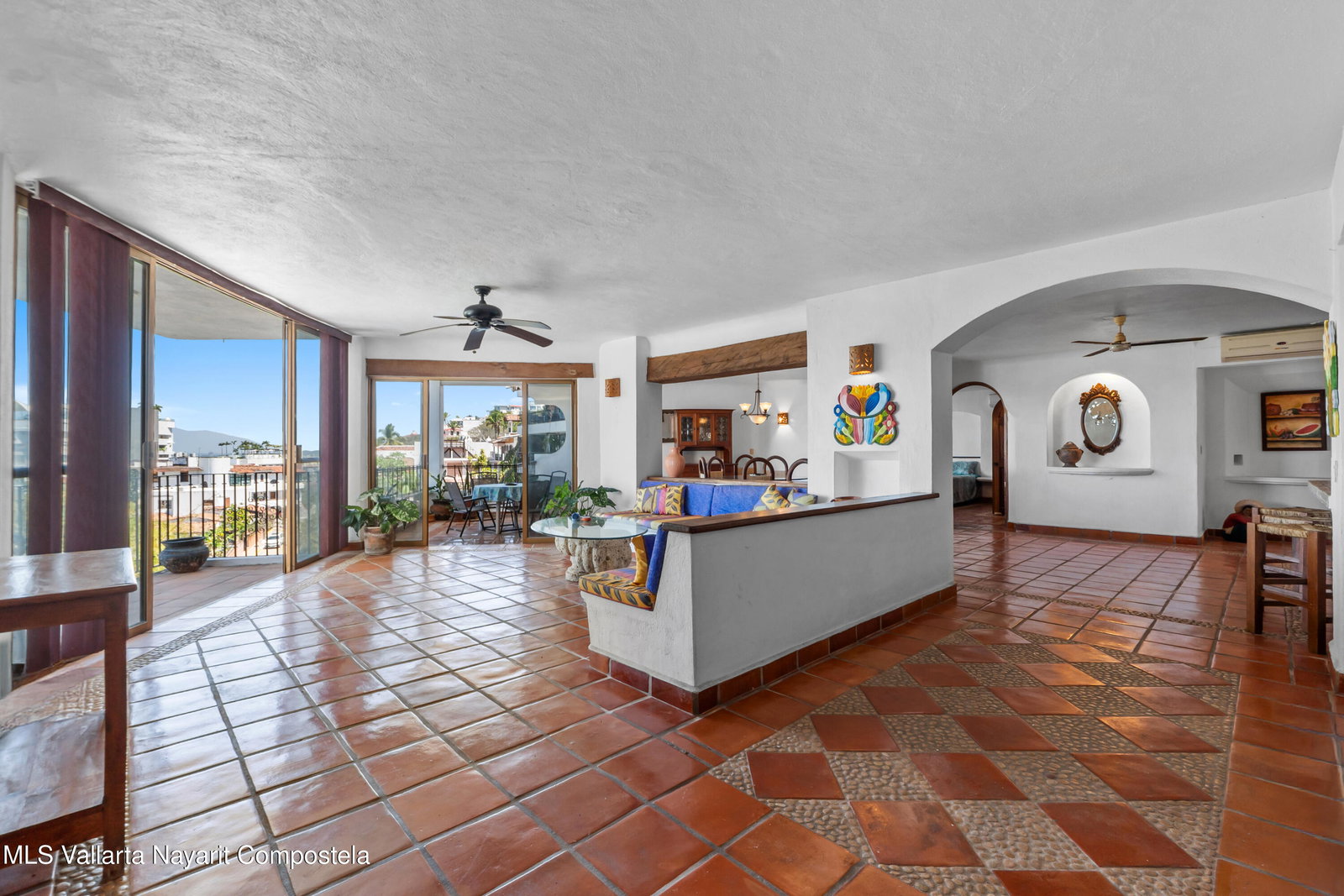 Designed for buyers seeking space, character, and long-term value, this generously sized condominium offers a layout rarely found in newer developments. The open living and dining areas extend naturally onto a large terrace, creating an inviting indoor-outdoor lifestyle ideal for enjoying Puerto Vallarta's climate year-round. With three spacious bedrooms, this residence stands out as one of the largest options available in its price range, offering exceptional value per square foot.Authentic Mexican details give the home a warm and timeless feel, including terracotta flooring throughout and traditional Talavera tile accents in the kitchen and bathrooms. The primary suite is notably large and opens directly to a private terrace. A second bedroom enjoys peaceful green views, while the