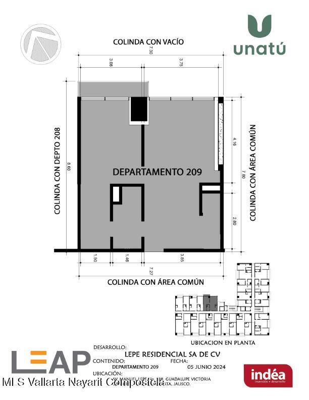 Ubicado en Calle Manuel Lepe, Col. Guadalupe Victoria, una de las zonas con mayor crecimiento y plusvalia en Puerto Vallarta, UNATU ofrece alta conectividad al aeropuerto, central camionera, centros comerciales y playas. Desarrollado por INDEA, cuenta con 116 departamentos en 10 niveles + rooftop, amenidades premium, estacionamiento y bodegas. Entrega estimada abril 2028. Mantenimiento aprox.