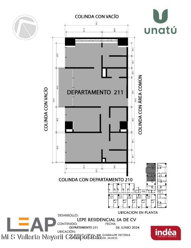 Ubicado en Calle Manuel Lepe, Col. Guadalupe Victoria, una de las zonas con mayor crecimiento y plusvalia en Puerto Vallarta, UNATU ofrece alta conectividad al aeropuerto, central camionera, centros comerciales y playas. Desarrollado por INDEA, cuenta con 116 departamentos en 10 niveles + rooftop, amenidades premium, estacionamiento y bodegas. Entrega estimada abril 2028. Mantenimiento aprox.