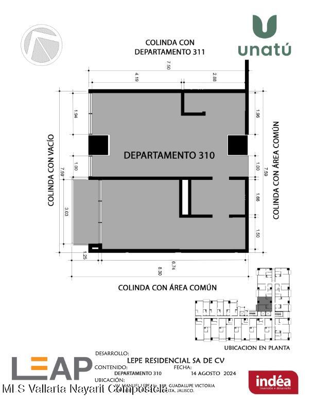 Ubicado en Calle Manuel Lepe, Col. Guadalupe Victoria, una de las zonas con mayor crecimiento y plusvalia en Puerto Vallarta, UNATU ofrece alta conectividad al aeropuerto, central camionera, centros comerciales y playas. Desarrollado por INDEA, cuenta con 116 departamentos en 10 niveles + rooftop, amenidades premium, estacionamiento y bodegas. Entrega estimada abril 2028.