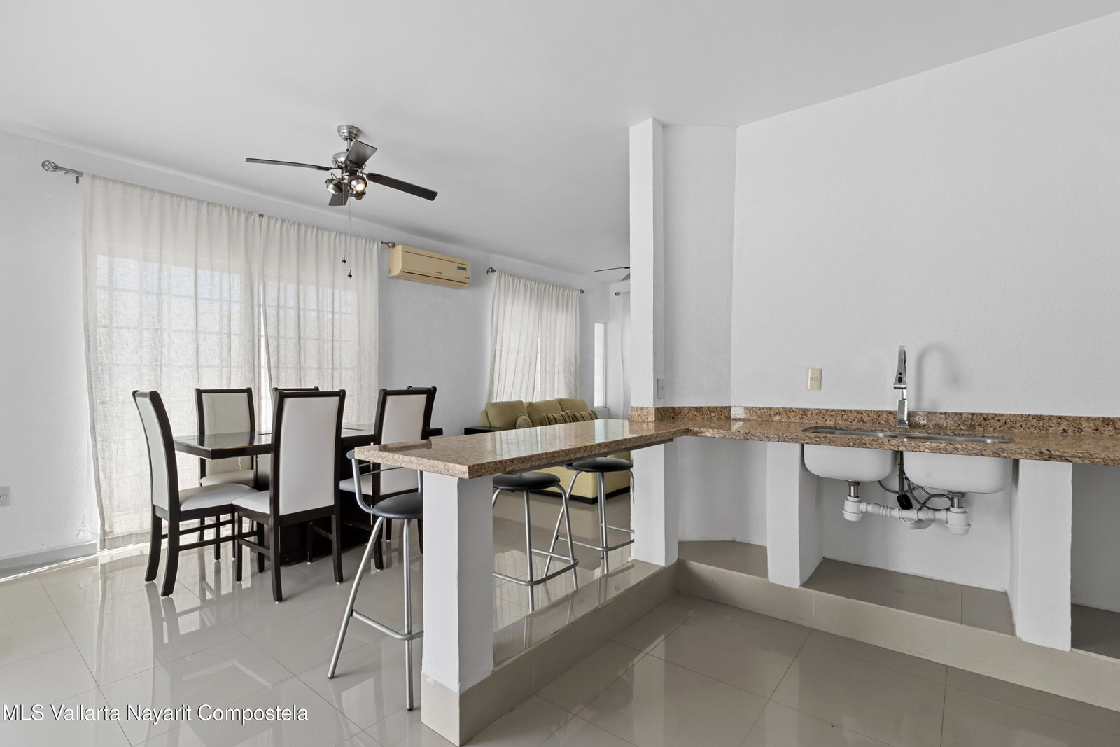 Casa en Privada Flamingos, coto privado con ubicacion estrategica en la zona Flamingos de Bucerias.La propiedad cuenta con 3 recamaras (2 con walk-in closet), 2.5 banos, techos altos, terraza con excedente, pequena bodega y estacionamiento para 2 autos.Parcialmente amueblada (aires acondicionados, ventiladores de techo, bases de cama y colchones, sofa y comedor para 6 personas).Cocina lista para personalizar, con barra de granito, doble tarja, estufa de 6 quemadores con horno y refrigerador.Incluye cuarto de lavado con centro de lavado.Coto con seguridad 24/7, alberca y area para ninos.A pasos de centros comerciales y servicios, y a minutos de la playa. Ideal para vivir o invertir.