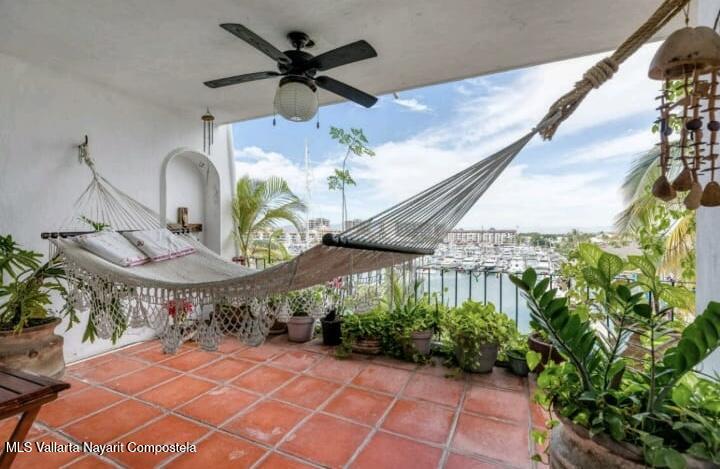 Beautiful condo featuring mesmerizing marina views of the boats. The unit offers 2 spacious bedrooms with closets, including a primary bedroom with ensuite bathroom and bathtub, a kitchen with cabinetry, and a bright, open living and dining area.Enjoy a large private terrace, perfect for outdoor furniture or a hammock while taking in the view.Private complex amenities include common pool, 24/7 security, indoor parking, tennis court, and elevator. Hermoso condominio tiene vista cautivadora a la marina y sus embarcaciones. La unidad ofrece 2 amplias recAmaras con clAsets, incluyendo recAmara principal con baA+/-o privado y tina, cocina con gabinetes, y un Area abierta y luminosa de sala. El complejo tiene amenidades como alberca comAn, seguridad 24/7, cancha de tennis y elevador.