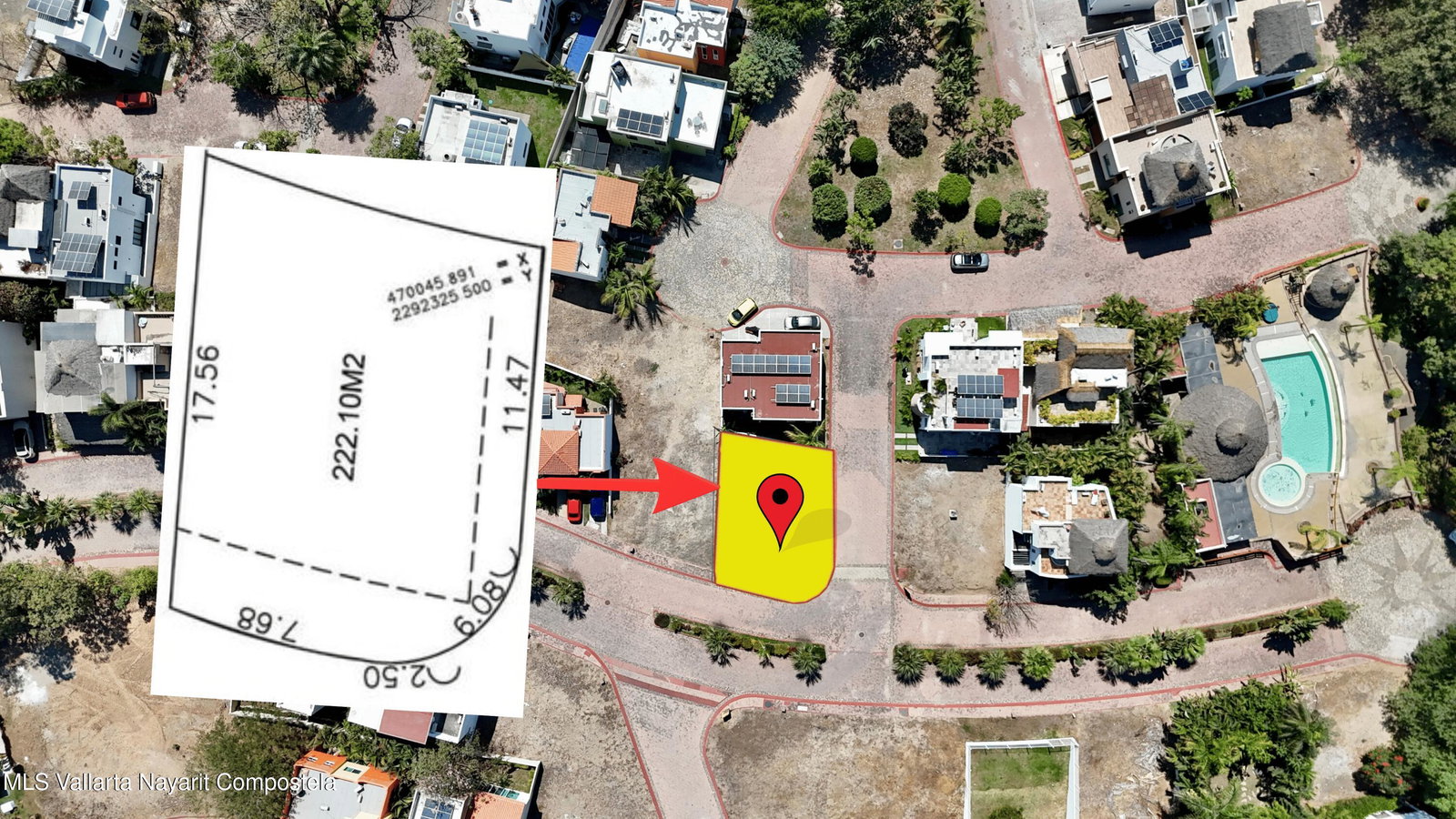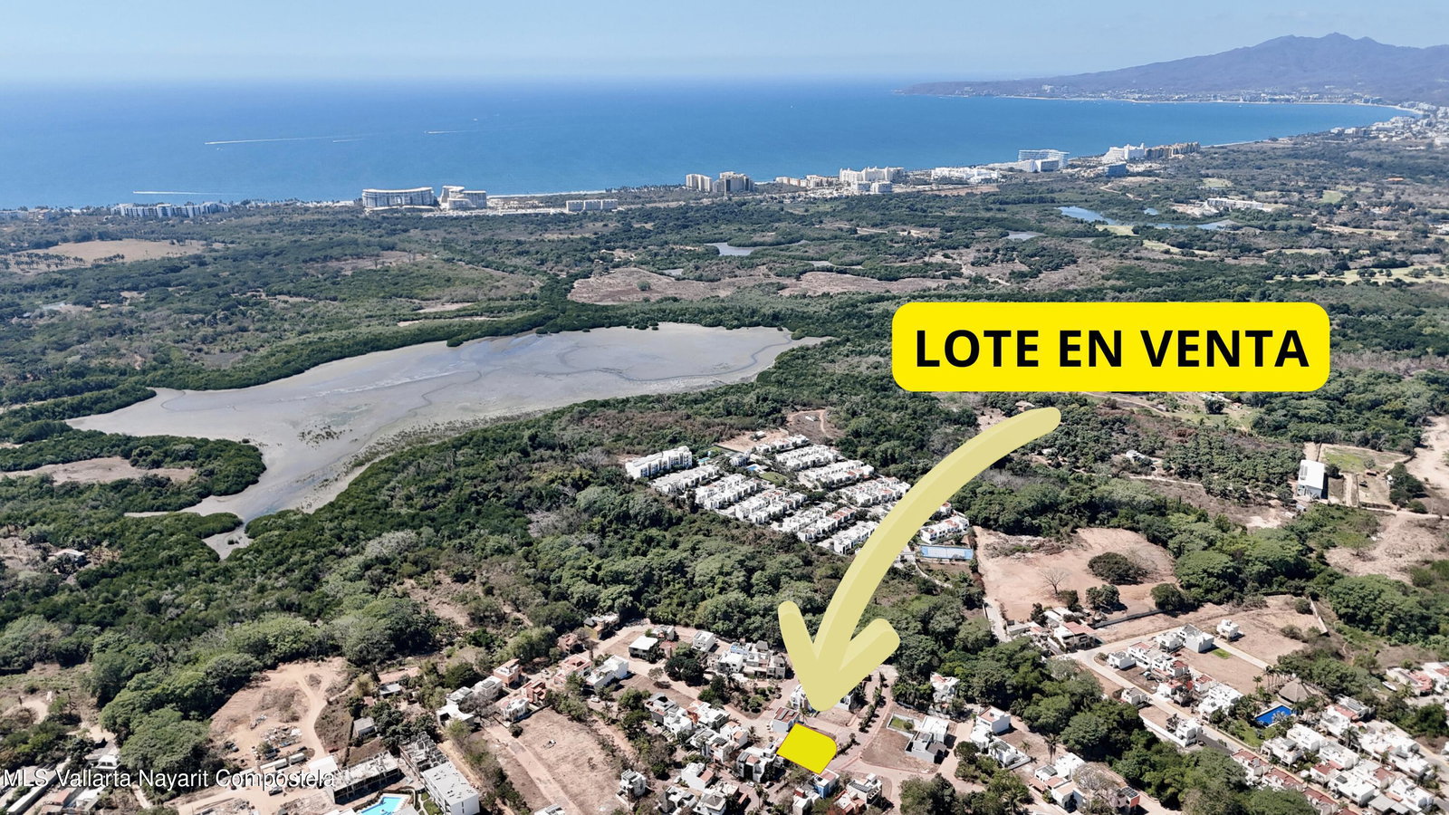 Corner residential lot of 222.10 m for sale within Refugio Laguna gated community.Ideally located one block from the clubhouse, offering excellent internal positioning, easy access and additional privacy.The lot has an irregular shape with the following boundaries: 7.68 m x 17.56 m x 11.47 m x 6.08 m x 2.50 m, allowing flexible architectural design and better use of space. Being a corner lot, it benefits from improved circulation and natural light. The development features curved street corners, enhancing traffic flow within the community.Refugio Laguna offers controlled access and 24/7 security, plus amenities such as a clubhouse with swimming pool, palapa and landscaped green areas. Located near Laguna Quelele and just minutes from Nuevo Nayarit beaches.