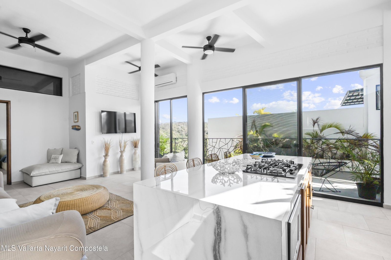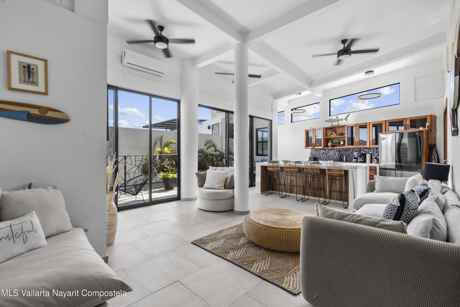 Spacious 3-bedroom, 4-bathroom condo with beautiful mountain views in Sayulita. This 392 m fully furnished residence features high ceilings and large windows that fill the space with natural light while showcasing stunning scenery. Enjoy a very spacious private rooftop terrace with a pool and BBQ area, perfect for entertaining. Solid concrete construction and one included parking space. Located in a boutique building with only 4 units and a shared pool. Situated in a quiet area of Sayulita, just a few minutes' drive from downtown and conveniently close to the PV-Guadalajara highway.