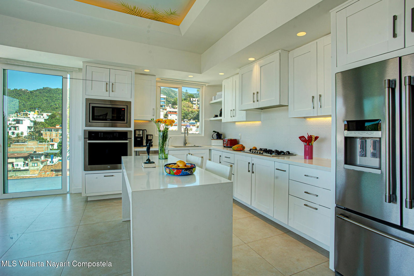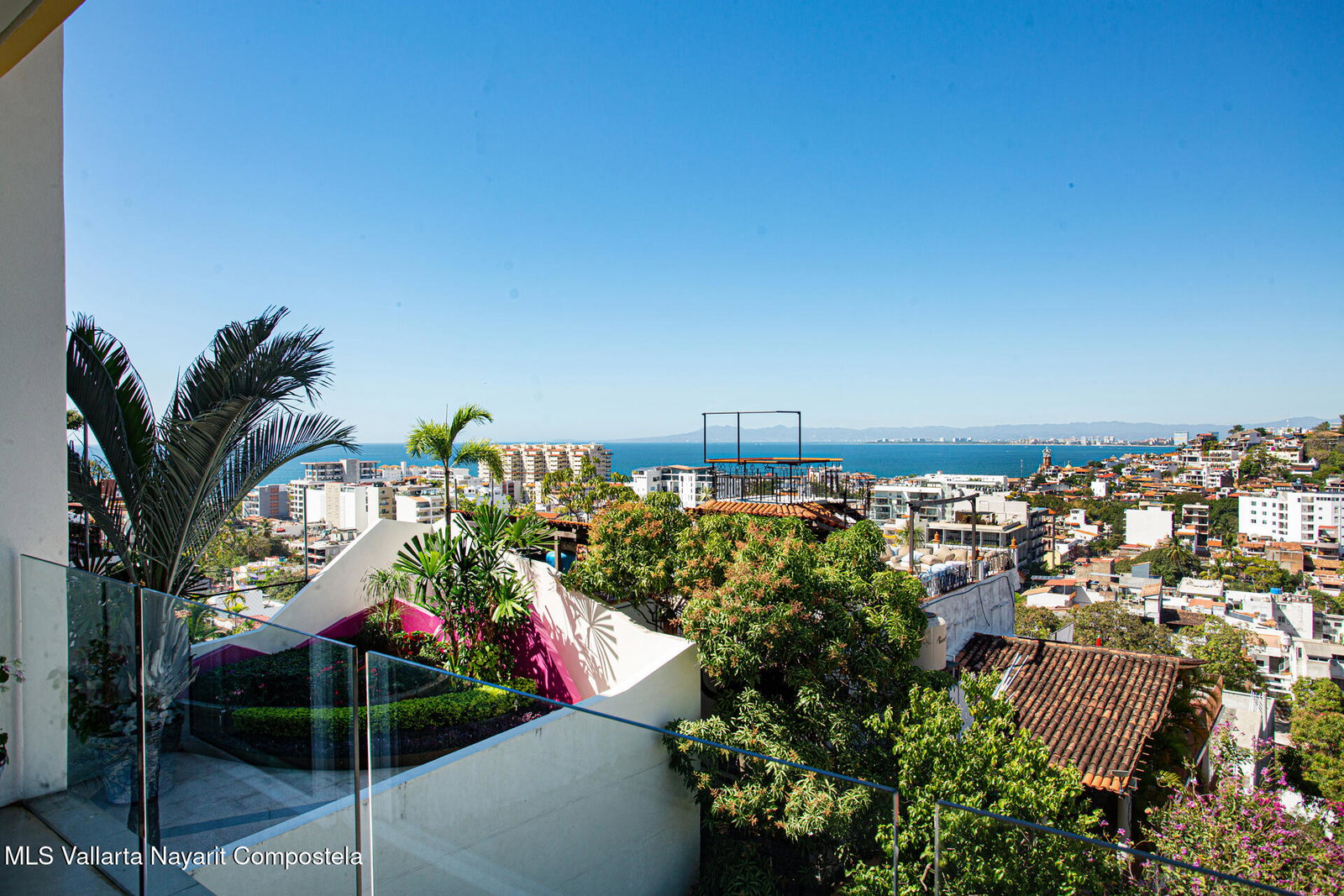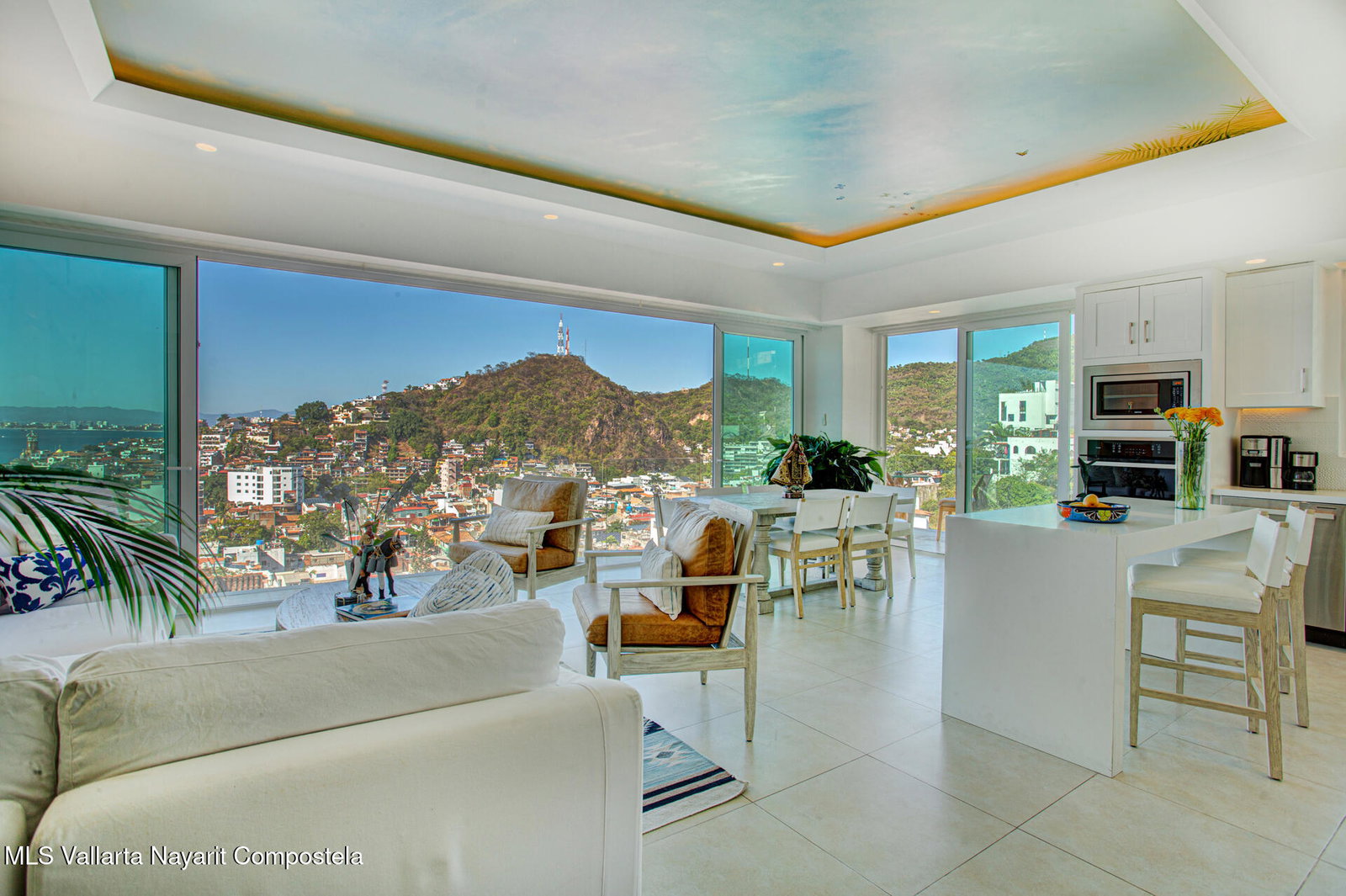 Enjoy breathtaking panoramic views of the ocean, city, and mountains from this light-filled corner residence featuring a wrap-around terrace designed for seamless indoor-outdoor living. Thoughtfully laid out for privacy, the two spacious primary suites are positioned on opposite sides of the condo -- each with its own view balcony. A proper laundry room, elegant powder room, and an impressive open-concept living, dining, and kitchen area create the perfect setting for entertaining friends and family in style. The rooftop amenities include a stunning pool, hot tub, kitchen, and fully equipped gym -- all offering 360 views. Located just steps from the restaurants, galleries, boutiques, and nightlife of the Romantic Zone, this impeccably maintained complex also offers 24-hour security,