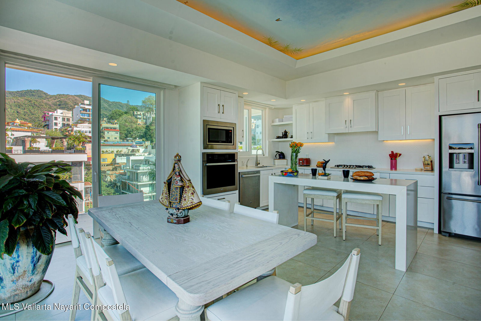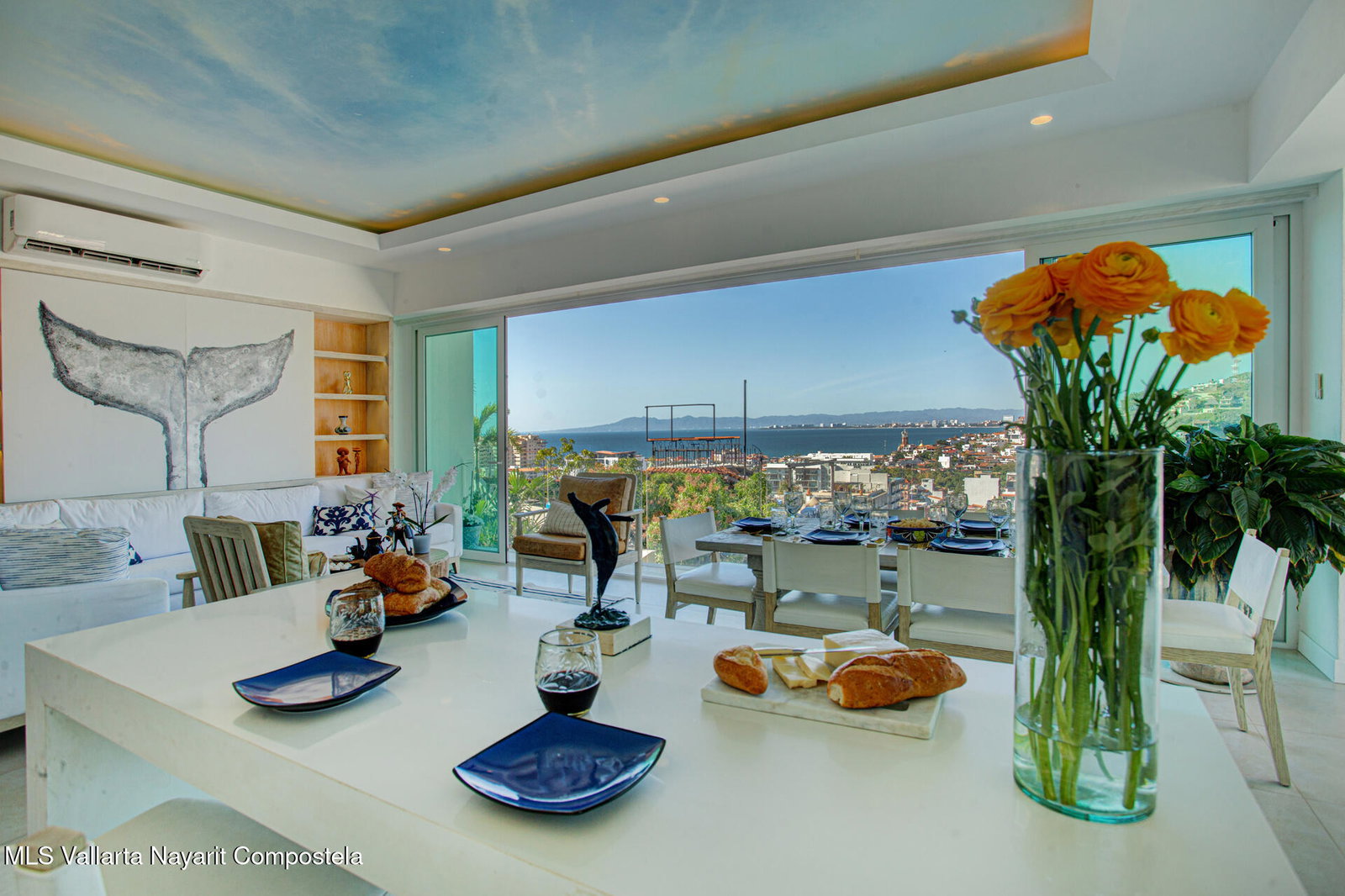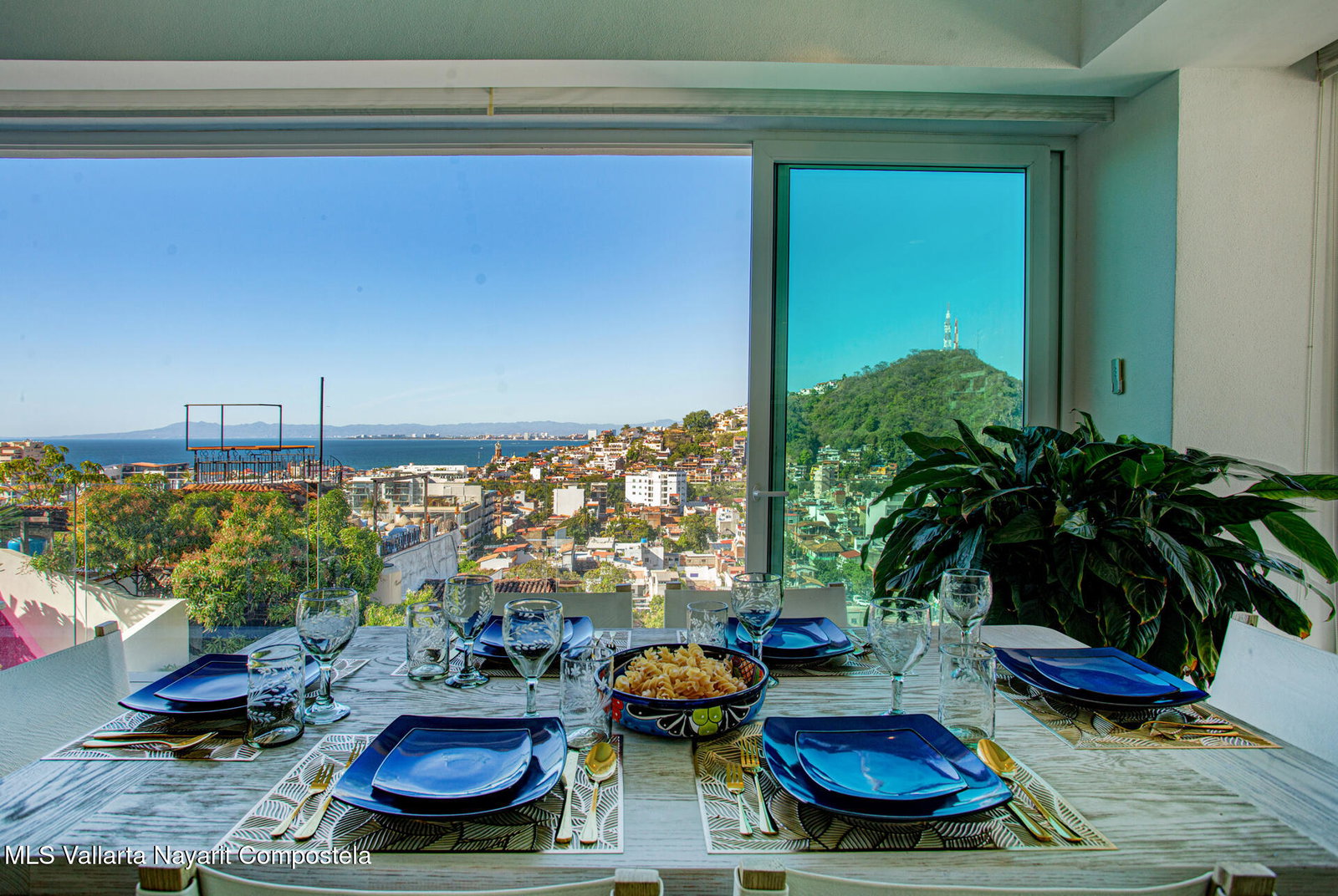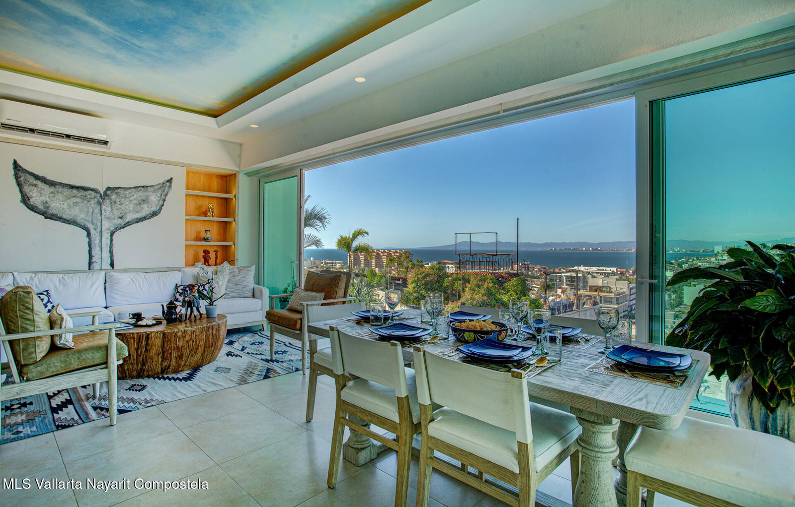 Enjoy breathtaking panoramic views of the ocean, city, and mountains from this light-filled corner residence featuring a wrap-around terrace designed for seamless indoor-outdoor living. Thoughtfully laid out for privacy, the two spacious primary suites are positioned on opposite sides of the condo -- each with its own view balcony. A proper laundry room, elegant powder room, and an impressive open-concept living, dining, and kitchen area create the perfect setting for entertaining friends and family in style. The rooftop amenities include a stunning pool, hot tub, kitchen, and fully equipped gym -- all offering 360 views. Located just steps from the restaurants, galleries, boutiques, and nightlife of the Romantic Zone, this impeccably maintained complex also offers 24-hour security,