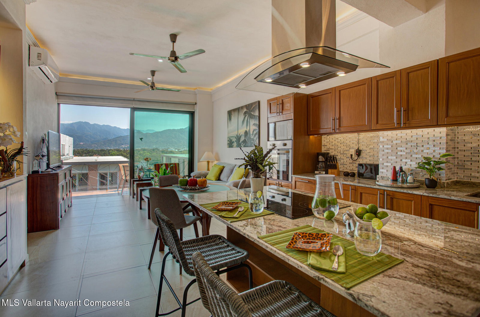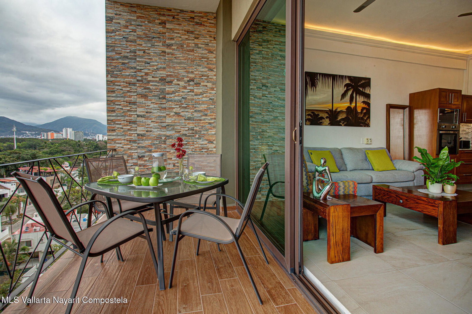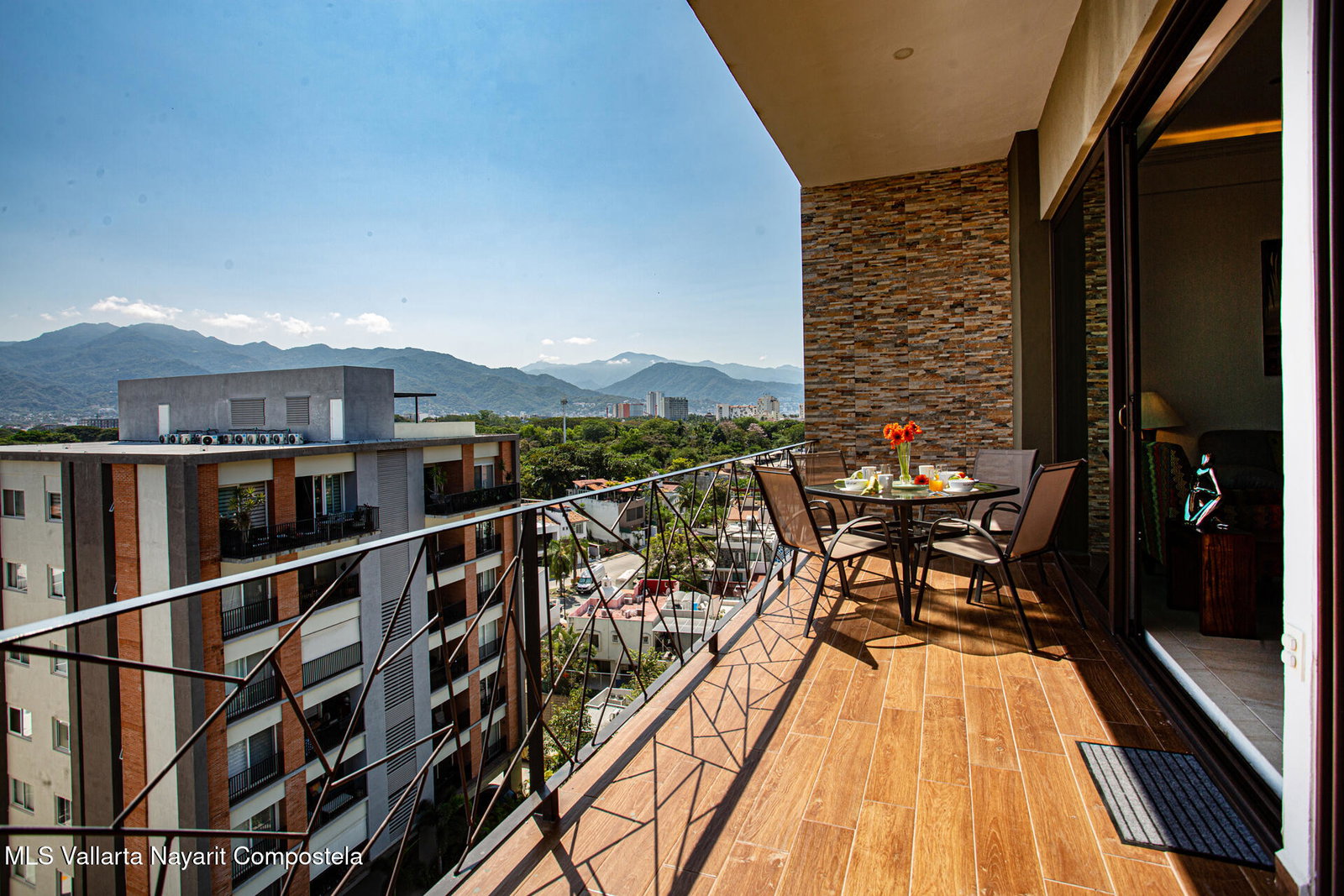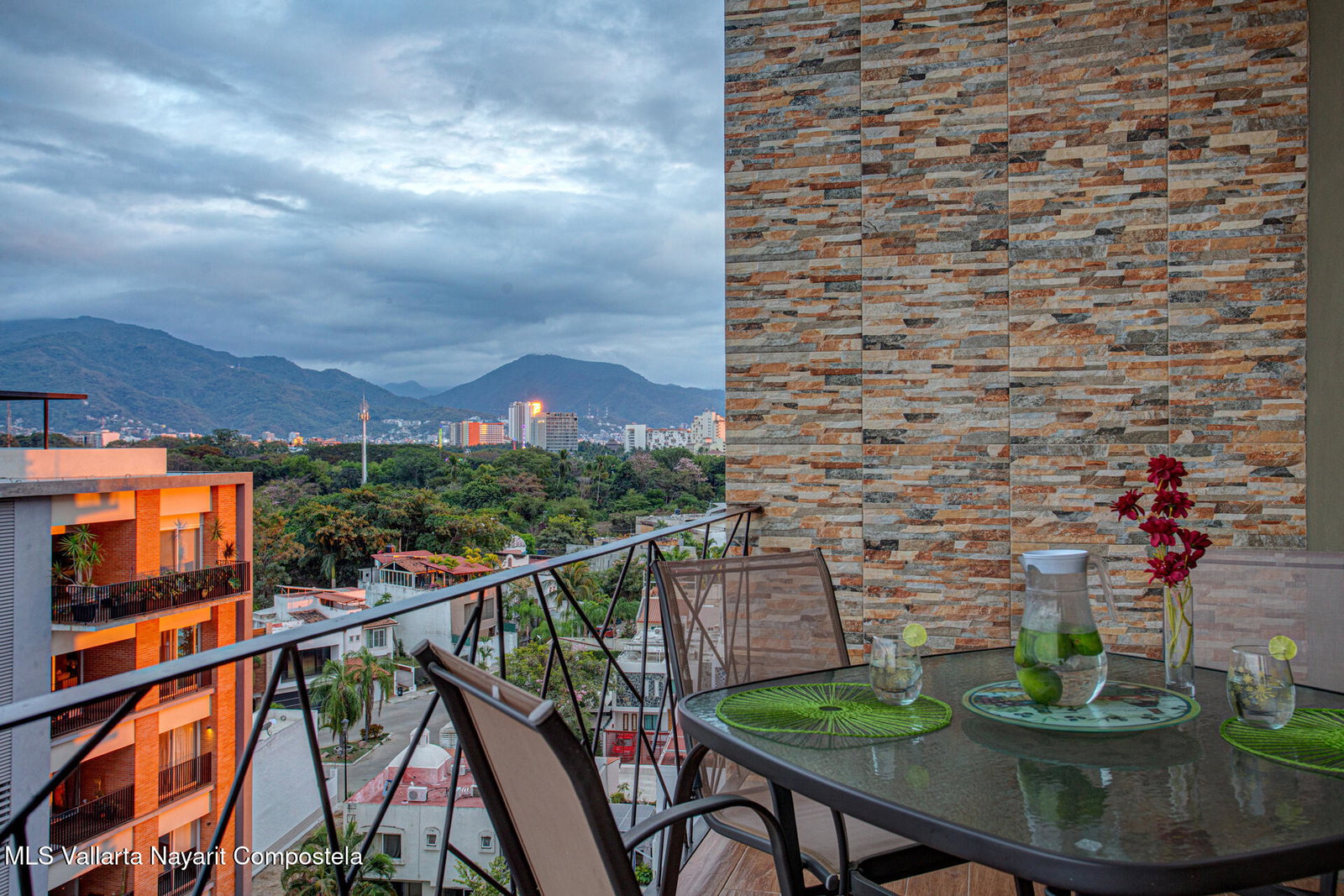 Enjoy city and Sierra Madre mountain views from this light-filled corner residence with an expansive wrap-around terrace designed for seamless indoor-outdoor living. The thoughtful layout places the two spacious suites on opposite sides of the condo, each with private balcony access. A proper laundry room and open living, dining, and kitchen area make entertaining easy. Rooftop amenities include a pool, lounge areas, outdoor kitchen, and gym with sweeping 360 views, plus a second heated pool on the garden level. Just steps from Vallarta's restaurants, galleries, boutiques, and nightlife. The well-maintained complex offers 24-hour security, on-site administration, two parking spaces, and beautifully kept common areas. Turnkey and fully furnished.