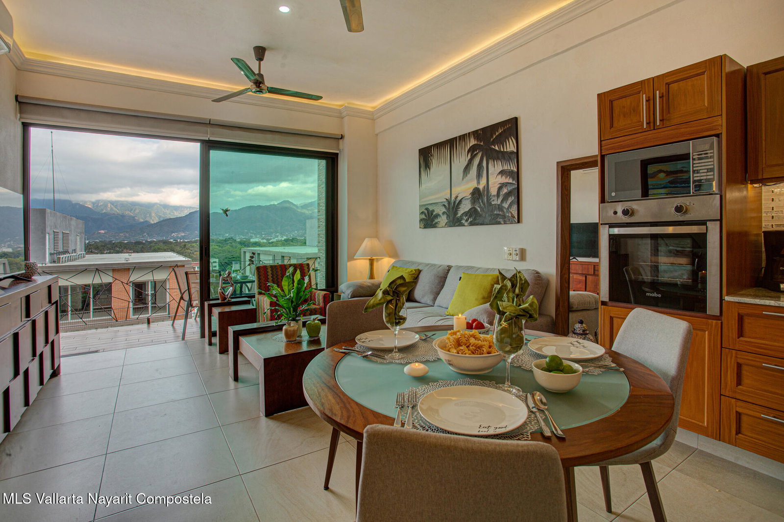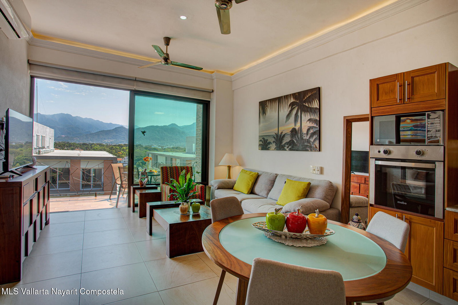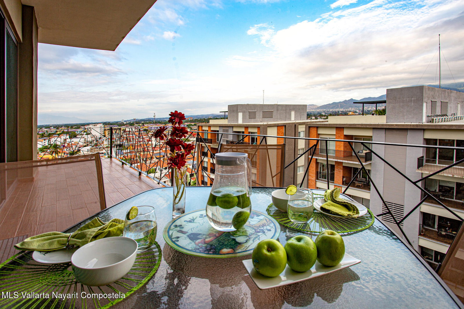 Enjoy city and Sierra Madre mountain views from this light-filled corner residence with an expansive wrap-around terrace designed for seamless indoor-outdoor living. The thoughtful layout places the two spacious suites on opposite sides of the condo, each with private balcony access. A proper laundry room and open living, dining, and kitchen area make entertaining easy. Rooftop amenities include a pool, lounge areas, outdoor kitchen, and gym with sweeping 360 views, plus a second heated pool on the garden level. Just steps from Vallarta's restaurants, galleries, boutiques, and nightlife. The well-maintained complex offers 24-hour security, on-site administration, two parking spaces, and beautifully kept common areas. Turnkey and fully furnished.