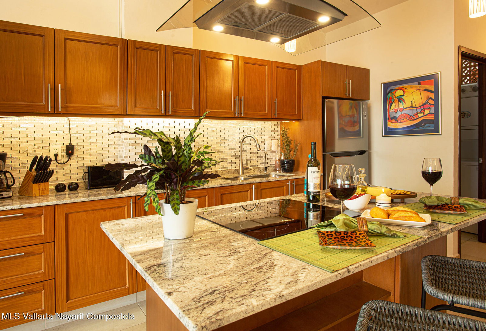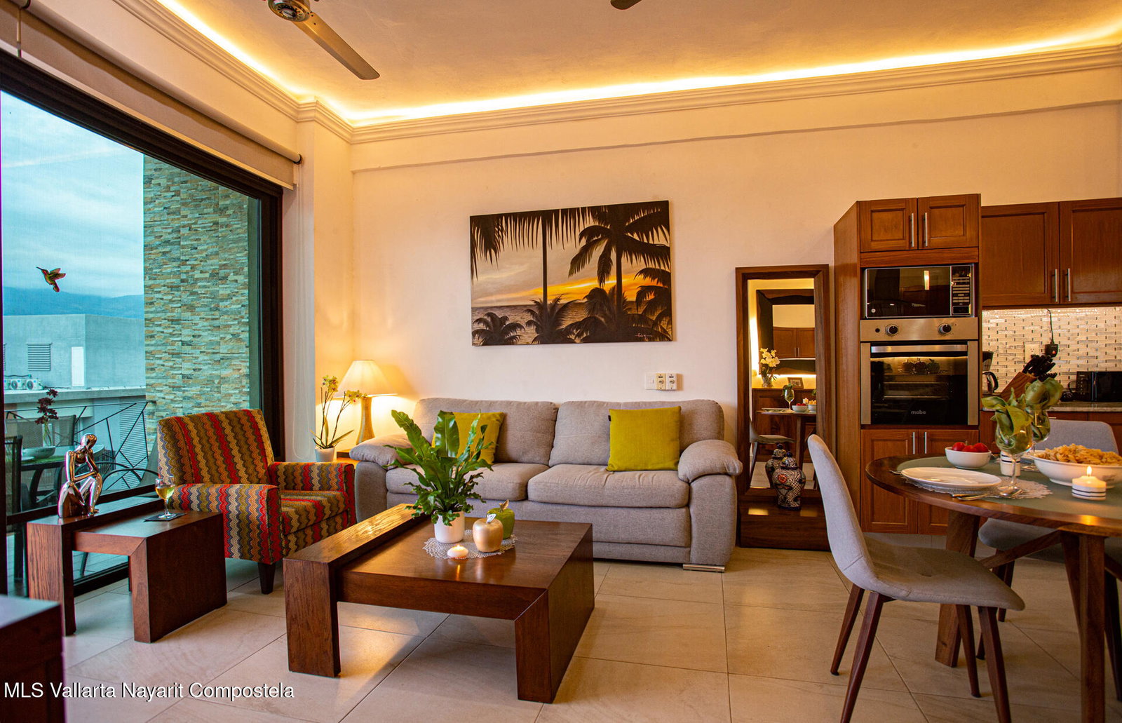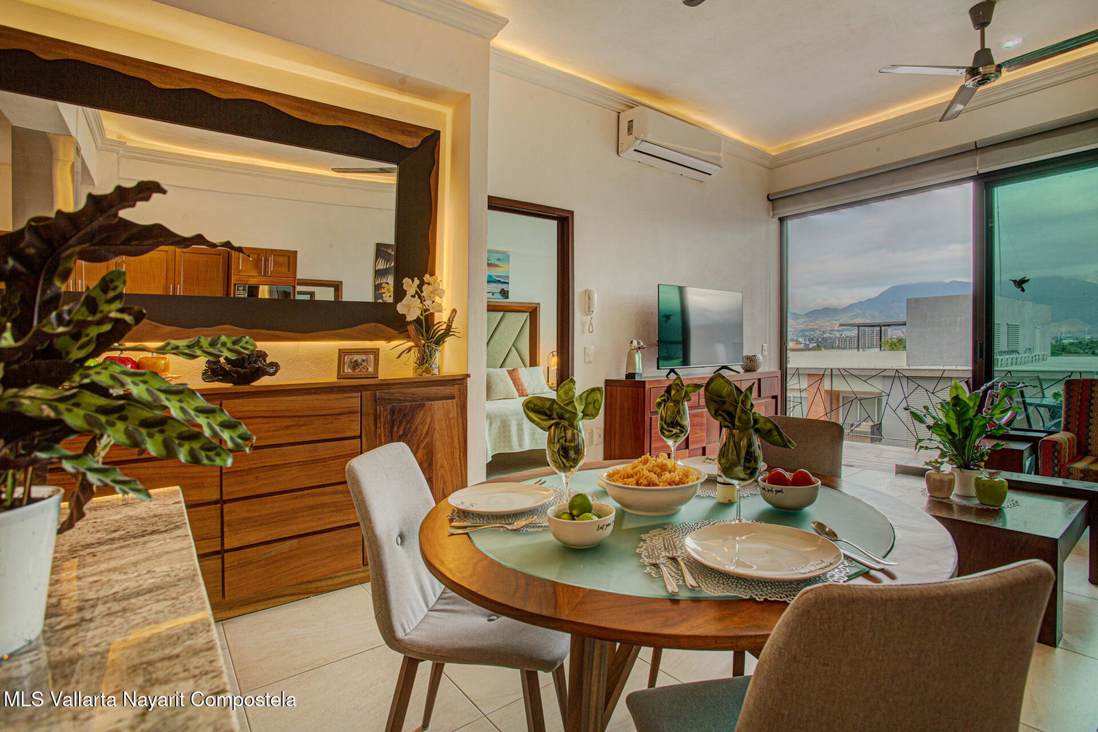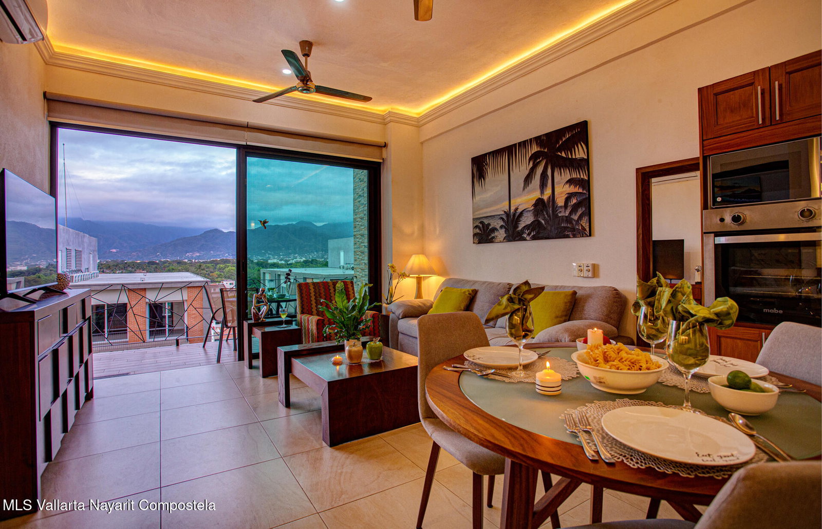 Enjoy city and Sierra Madre mountain views from this light-filled corner residence with an expansive wrap-around terrace designed for seamless indoor-outdoor living. The thoughtful layout places the two spacious suites on opposite sides of the condo, each with private balcony access. A proper laundry room and open living, dining, and kitchen area make entertaining easy. Rooftop amenities include a pool, lounge areas, outdoor kitchen, and gym with sweeping 360 views, plus a second heated pool on the garden level. Just steps from Vallarta's restaurants, galleries, boutiques, and nightlife. The well-maintained complex offers 24-hour security, on-site administration, two parking spaces, and beautifully kept common areas. Turnkey and fully furnished.