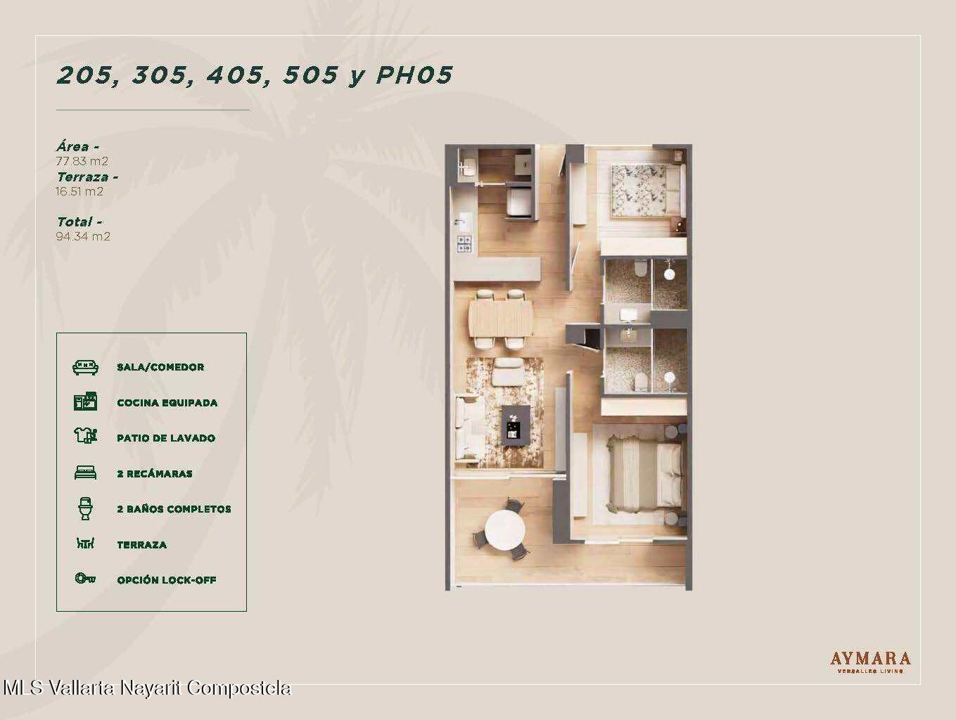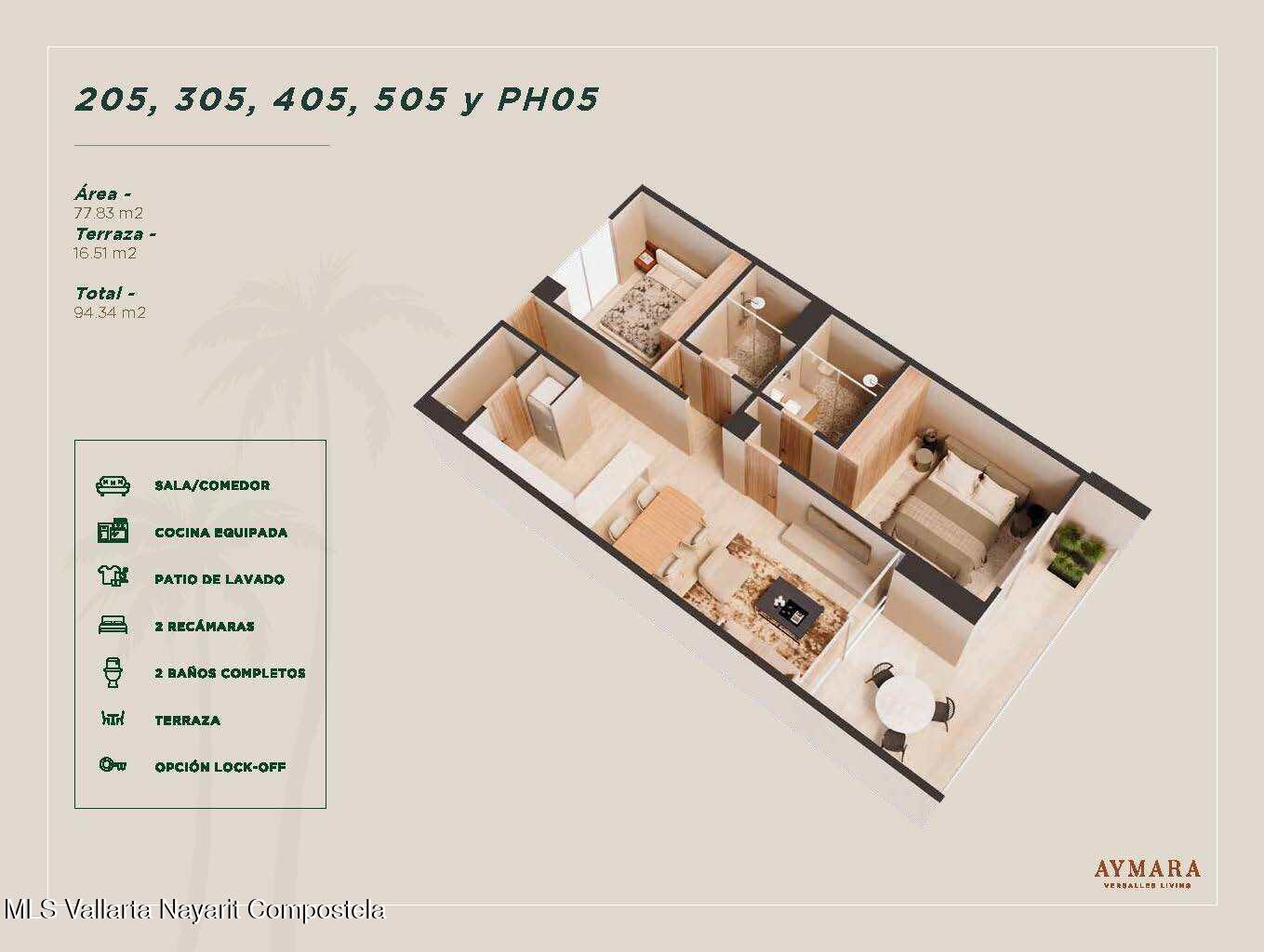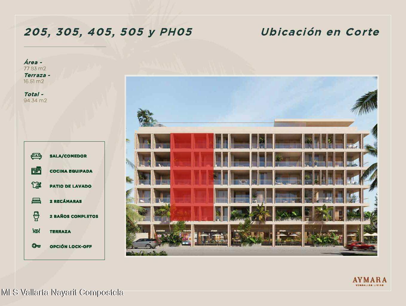English below<p>Aymara Versalles se encuentra en el corazon de la Colonia Versalles, en las calles Aldanaca y Berlin, una de las zonas de mas rapido crecimiento de Puerto Vallarta. El complejo cuenta con 43 unidades residenciales y una selecta variedad de practicos locales comerciales, dentro de un concepto moderno que combina un diseno cuidado, funcionalidad y una ubicacion muy conveniente. Las residencias tienen entre 64,55 m2 y 143,88 m2, con distribuciones de 1, 2 y 3 dormitorios disenadas tanto para una vida comoda como para un solido potencial de inversion. El proyecto ofrece acabados de alta calidad, amplias terrazas y acogedoras zonas comunes que complementan el dinamico estilo de