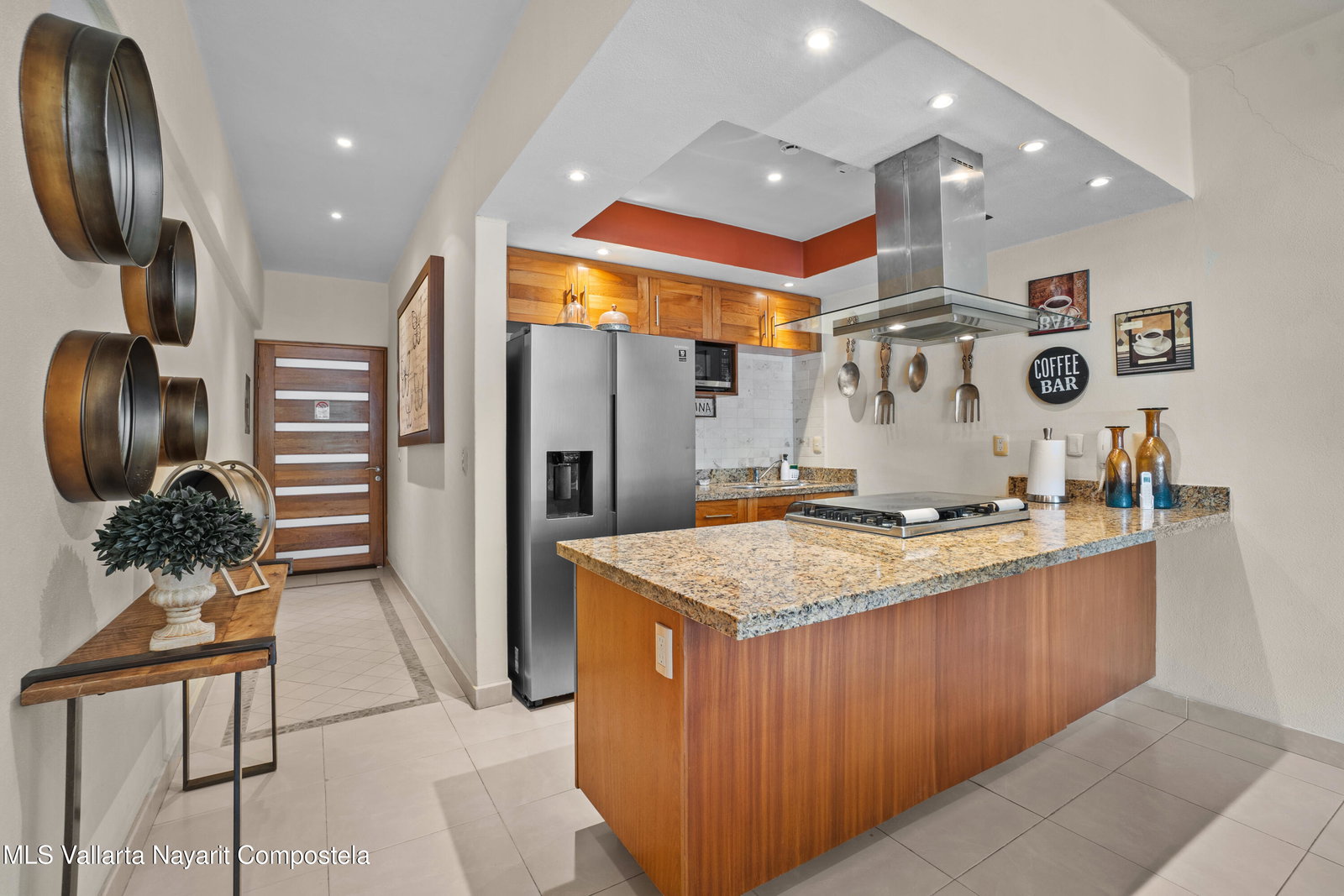 Discover this beautifully designed 2-bedroom, 2-bath condo in the charming 5 de Diciembre neighborhood. Nestled on a hillside just a few blocks from the beach, restaurants, and shops, this top-floor unit offers breathtaking ocean and city views. Enjoy luxury living with high vaulted ceilings, an open-concept kitchen, and a spacious living area that flows onto a private balcony. The primary suite boasts a king-size bed, ensuite bath, and direct balcony access. The second bedroom includes a queen-size bed and ample storage. This complex features two ocean-view pools, a jacuzzi, a gym, and a rooftop terrace with panoramic sunsets. Secure parking and elevator access included. Own your piece of paradise today!