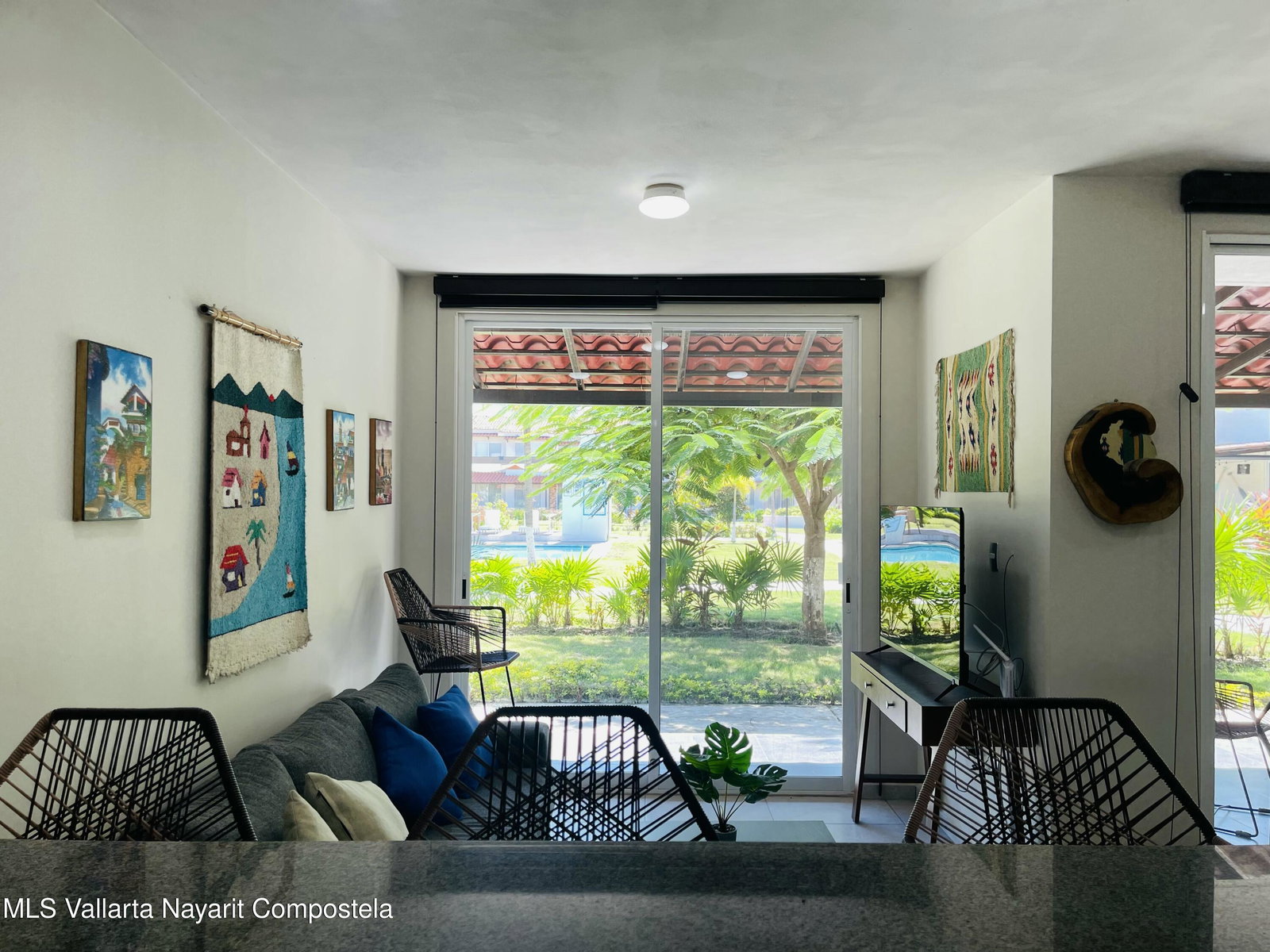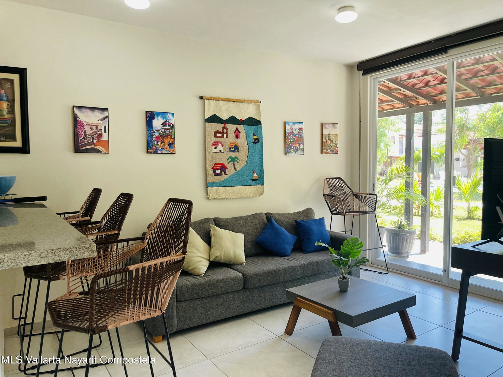 Beautiful 3-Bedroom Furnished Townhome in Villa Paradiso - Private Gated Community with Solar PanelsDiscover this charming and fully furnished 3-bedroom townhome located in the desirable Villa Paradiso condominium, a secure and peaceful private community. Designed for comfort and functionality, this property is ideal for full-time living, vacation use, or investment.The home features a bright open-concept layout with a spacious living and dining area, seamlessly connected to a modern kitchen with granite countertops and breakfast bar. Large sliding glass doors open to a covered terrace, perfect for relaxing while enjoying serene garden views.One of the standout features of this property is its 10 solar panels, offering energy efficiency and significant savings on electricity.