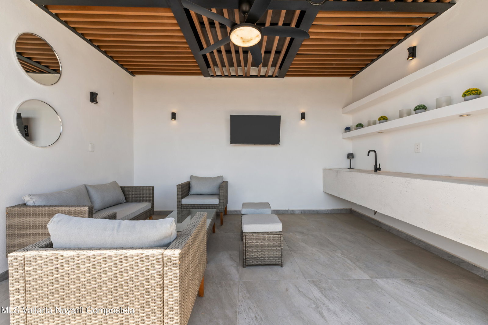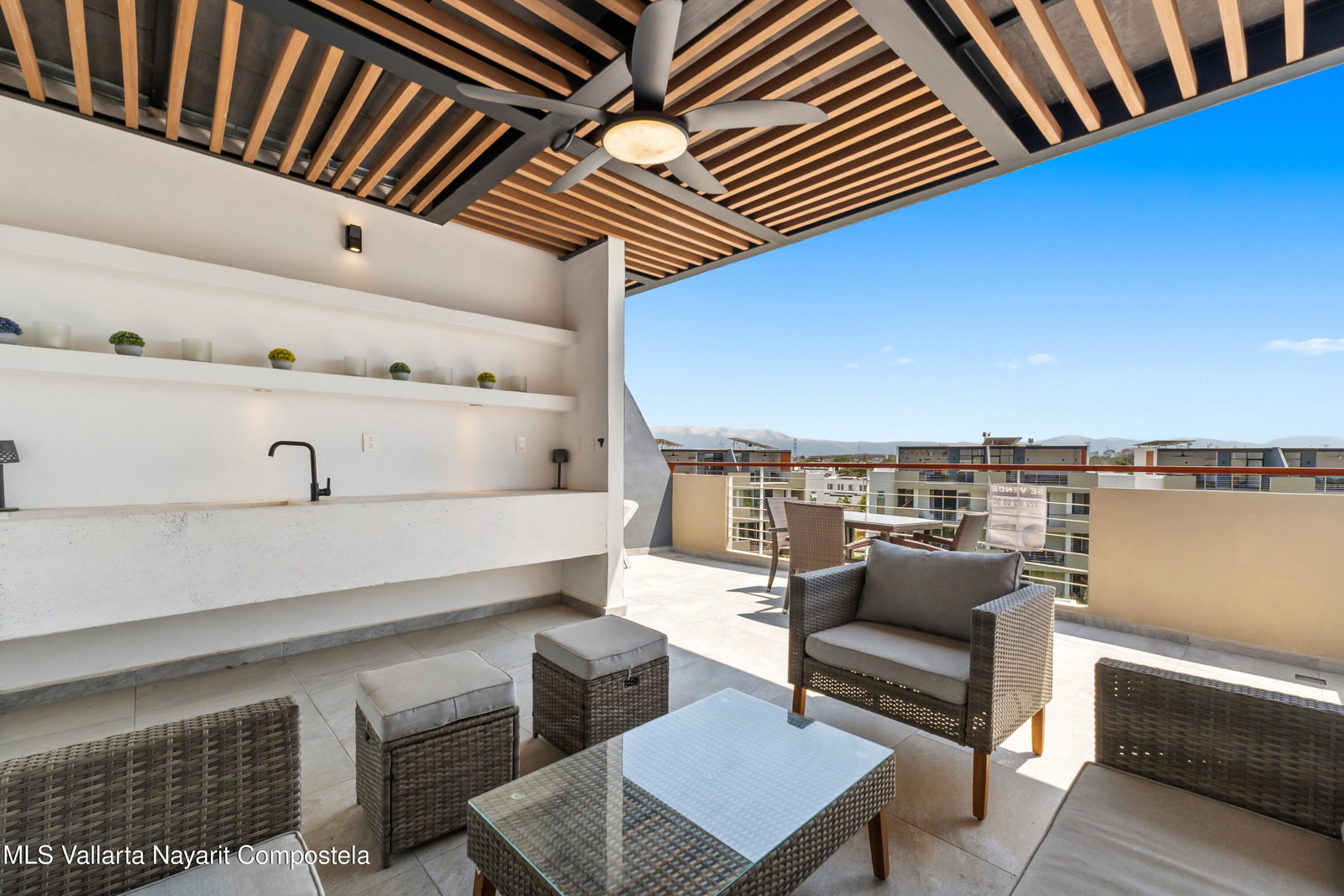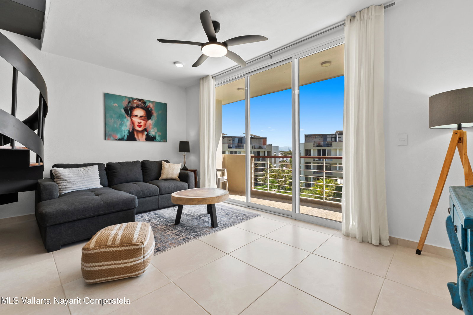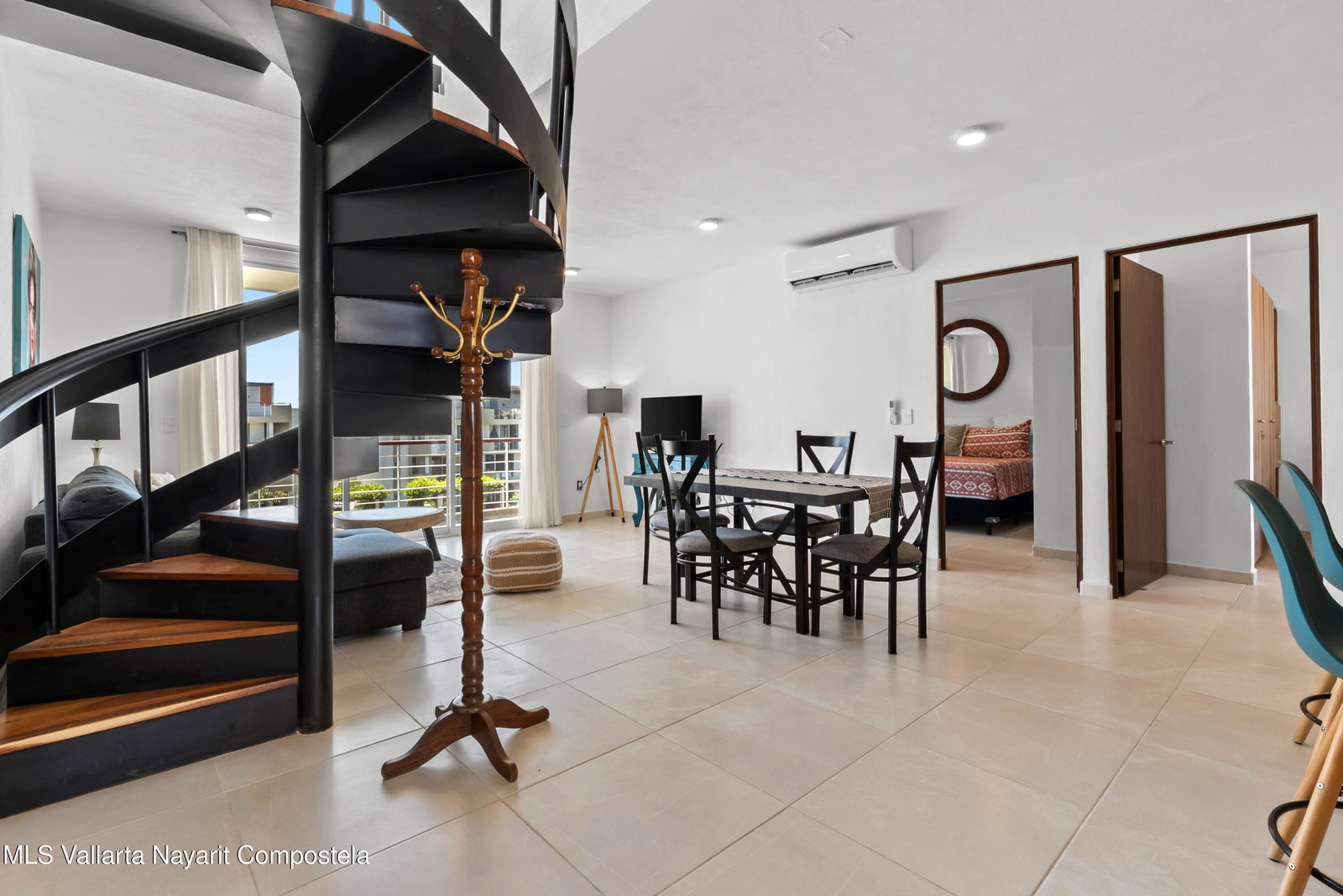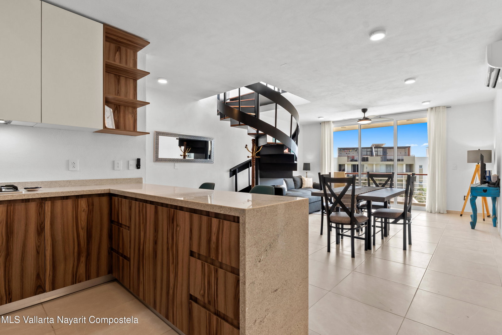 Espanol abajo:Modern 2-bedroom, 2-bath furnished condo located in a well-maintained community in Mezcales, just minutes from Nuevo Vallarta and Bucerias. This bright unit features an open-concept layout, a spiral staircase, and a private terrace ideal for indoor-outdoor living. The development offers resort-style amenities including a large pool, landscaped gardens, and social areas. Conveniently located near supermarkets, shopping, main roads, and less than 20 minutes from Puerto Vallarta International Airport. Excellent option for full-time living, vacation use, or rental investment.