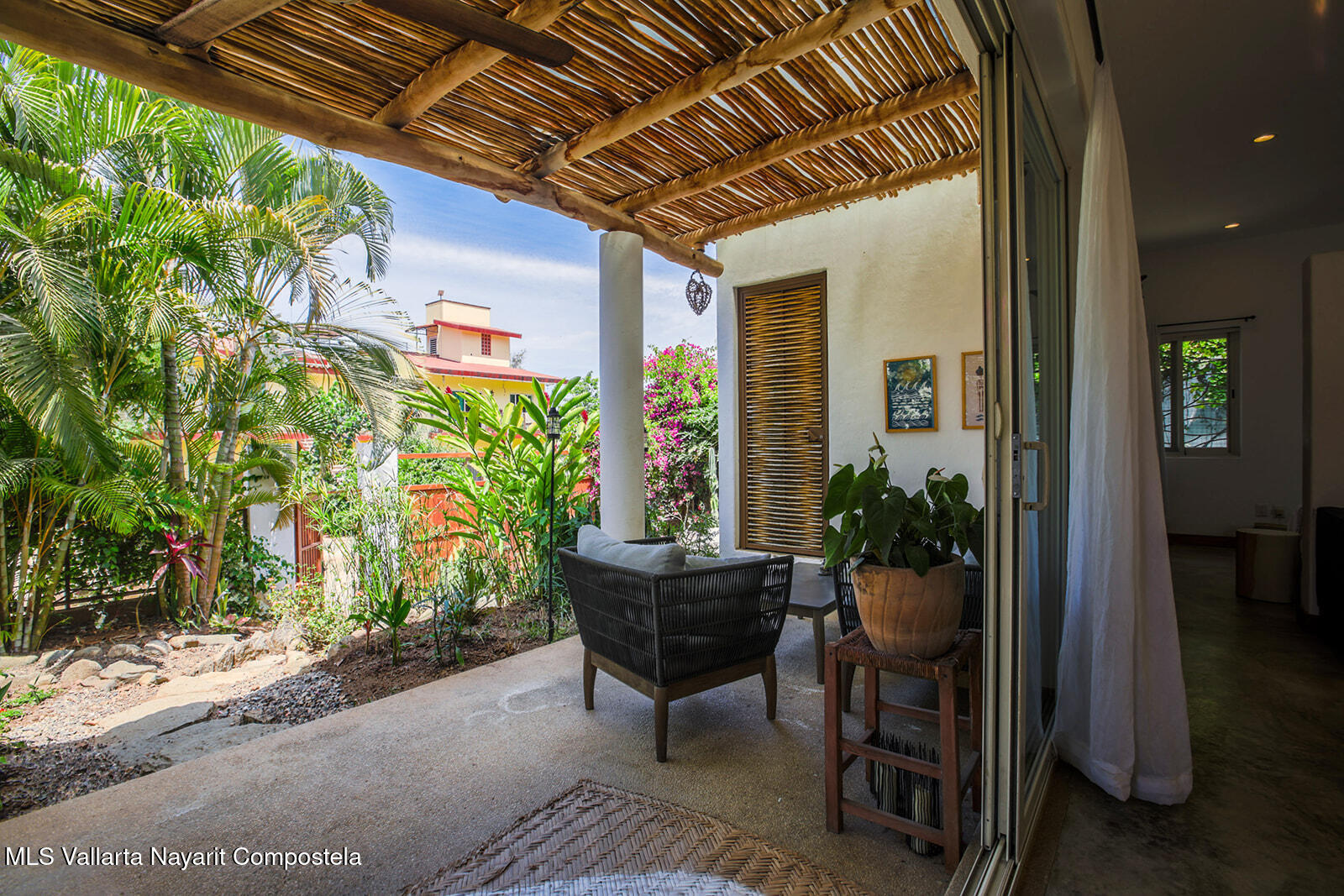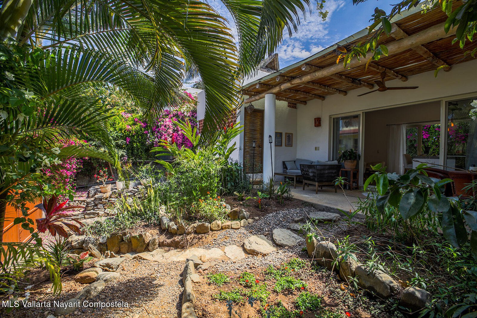 *Espanol abajo* Hidden in lush gardens, this enchanting San Pancho retreat offers peace and privacy, just steps across the pedestrian bridge to the vibrant heart of town. Architect-designed plans unlock incredible potential: add two bedrooms upstairs and create a show-stopping rooftop oasis with a palapa, pool, and breathtaking town and mountain views. In Nayarit's most coveted coastal gem, opportunities like this are rare--don't miss it.<p> *Escondido entre jardines exuberantes, este encantador refugio en San Pancho ofrece paz y privacidad, a pasos del centro cruzando el puente peatonal. Incluye planos de arquitecto para ampliar con dos recamaras y crear un oasis en la azotea con palapa, alberca y vistas al pueblo y las montanas. No te pierdas esta oportunidad unica en la joya costera