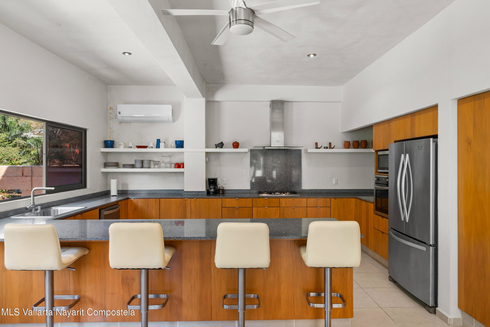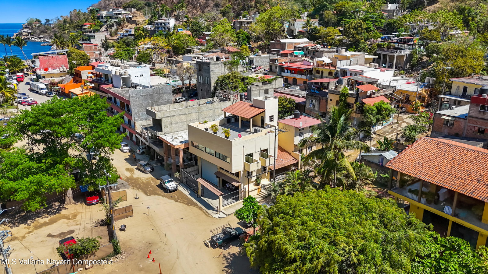 Charming coastal home in Boca de Tomatlan, just steps from the river and minutes to the beach and boat launch for easy access to Banderas Bay. The ground level features a spacious garage for a large boat and multiple vehicles, plus a full bath and secure storage.An intermediate level, currently a large office with kitchenette, is plumbed and can be easily converted into a studio or guest suite.The main level offers an open-concept layout with 2 bedrooms, 2 bathrooms, and bright living, dining, and kitchen areas. The terrace includes a covered patio with outdoor kitchen, sink, and BBQ--perfect for entertaining or relaxing.Ideal as a full-time home, vacation retreat, or income property.